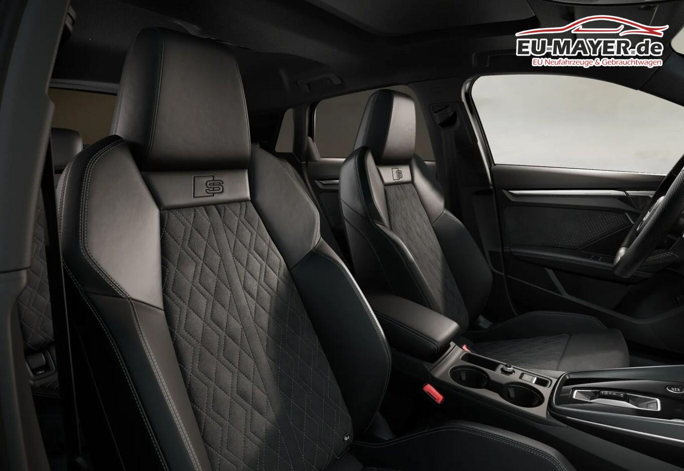Interieur-Paket: S line mit Sportsitze, Sitzbezug Mikrofaser / Kunstleder, schwarz (Dachhimmel Stoff, schwarz / Innenausstattung: Aluminium-Optik / Kontur / Ambientebeleuchtungs-Paket (pro) / Pedalerie in Edelstahl / Rücksitzlehne geteilt/klappbar (40:20:40) / Sitzbezug / Polsterung: Mikrofaser Dinamica / Kunstleder Kombination mit Logo-Prägung in Vordersitzlehnen / Sportsitze vorn), Infotainment-Paket (Audi Application Store und Smartphone Interface / Audi connect (Internetbasierende Dienste) / Kombiinstrument digital (virtual cockpit plus) / Sound-System DSP / Audi Sound-System / Multi-Media-Interface MMI Navigation Plus mit MMI Touch), LM-Felgen 8x18 (5-Y-Doppelspeichen Schwarz-Metallic), Panorama-Ausstelldach elektrisch, Klima-Paket (Komfort-Klimaautomatik 3-Zonen / Sitzheizung vorn), Scheinwerfer LED (Heckleuchten LED mit dynamischem Blinklicht), Assistenz-Paket Fahren (Fahrassistenz-System: Adaptive Geschwindigkeitsregelanlage (Adaptive Cruise Control) mit Autom. Distanzregelung / Rückfahrkamera / Einparkhilfe vorn und hinten, akustisch und optisch mit selektiver Anzeige (APS Plus) / Fahrassistenz-System: Parklenkassistent mit selektiver Anzeige / Fahrassistenz-System: Spurverlassenswarnung inkl. Notfall-Assistent), Optik-Paket schwarz plus, Gepäckraumklappe elektr. betätigt (öffnen + schliessen), Verglasung hinten abgedunkelt (Privacyverglasung), Innenausstattung: Dekoreinlagen Aluminium Spektrum dunkel, Lenkrad (Sport/Leder - 3-Speichen, unten abgeflacht) mit Multifunktion und Schaltfunktion, Audi Drive Select, Ambiente-Lichtpaket, Anschlussgarantie (1 Jahr / 90.000 km), Antiblockiersystem (ABS), Außenspiegel elektr. verstell-, heiz- und anklappbar, mit Abblendautomatik und Beifahrerspiegelabsenkung, Einstiegsleisten mit Aluminiumeinlage, Elektronische Stabilitätsprogramm (ESP), Fahrassistenz-System: Notbremsassistent, Innenspiegel mit Abblendautomatik, Komfortöffnung Gepäckraumklappe, Lendenwirbelstützen vorn, elektr. verstellbar, Mittelarmlehne vorn, Ottopartikelfilter (OPF), S line Exterieur, Serviceintervall 30.000 km oder 2 Jahre, Sommerreifen 225/40 R18, Zentralverriegelung, Motor 2,0 Ltr. - 150 kW 16V TFSI KAT (DYWA) (Motor 2,0 Ltr. - 150 kW 16V TFSI), Isofix-Aufnahmen für Kindersitz an Beifahrersitz und Rücksitz (Isofix-Aufnahmen für Kindersitz), Außenspiegel Wagenfarbe, Dachkantenspoiler S-line, Geschwindigkeits-Begrenzeranlage, Heckscheibenwischer, Karosserie: 5-türig, Kindersicherung elektr. betätigt, Kopfstützen hinten (3-fach), Parkbremse elektro-mechanisch, Radioempfang digital (DAB), Sitzbelegungserkennung für Sicherheitsgurte, Sitze vorn manuell einstellbar, Stoßfänger Sport-Design (S-line), Vorbereitung Lichtassistent für weitere Funktionen (feature on demand, FOD), Bluetooth-Freisprecheinrichtung mit Audi Phone Box light, USB-Ladeanschlüsse (2-fach, Typ C) für Fondpassagiere, Fahrassistenz-System: Bremsassistent (Audi pre sense front), Wegfahrsperre (elektronisch), Getriebe 7-Gang - Doppelkupplungsgetriebe S-tronic, Airbag Beifahrerseite abschaltbar, Airbag Fahrer-/Beifahrerseite, Kopf-Airbag-System (Sideguard), Schließ-/Startsystem Advanced Key (Komfortschlüssel), Seitenairbag vorn, Seitenairbag vorn mitte (Interaktionsairbag), Wärmeschutzverglasung grün getönt, Fahrassistenz-System: Verkehrszeichenerkennung, Multifunktionskamera, Audi connect (Notruf- und Assistance-System), Fahrassistenz-System: Notfall-Assistent mit automatischem Notruf, Servolenkung elektro-mechanisch, Licht- und Regensensor, Tagfahrlicht, Fahrassistenz-System: Ausweich-Assistent, Fahrassistenz-System: Kreuzungs-Assistent, Fahrassistenz-System: Müdigkeitserkennung (Pausenempfehlung), Reifendruck-Kontrollsystem, Start-Stop-Knopf, Start/Stop-Anlage