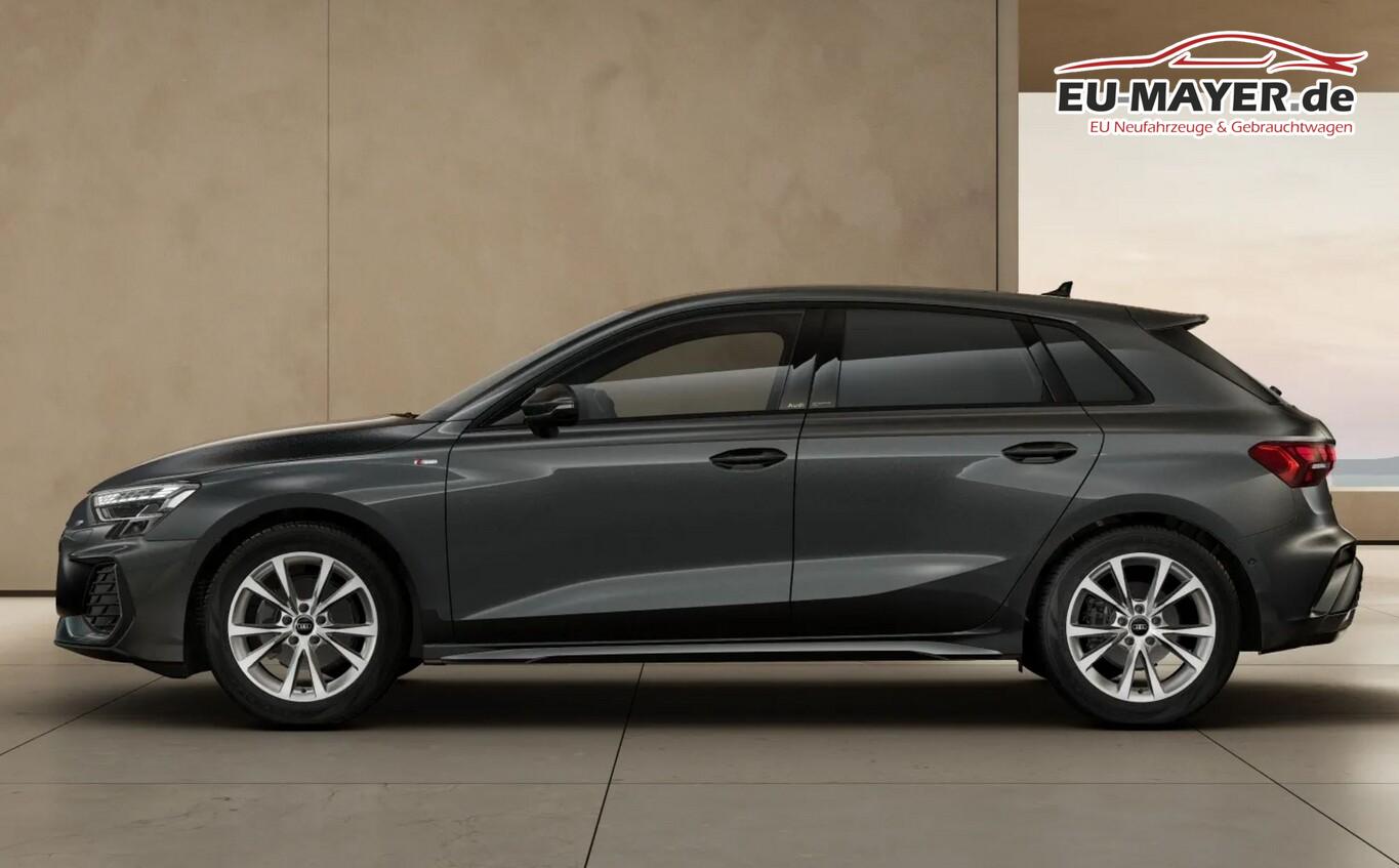 Infotainment-Paket (Audi Application Store und Smartphone Interface / Audi connect (Internetbasierende Dienste) / Kombiinstrument digital (virtual cockpit plus) / Sound-System DSP / Audi Sound-System / Multi-Media-Interface MMI Navigation Plus mit MMI Touch), Klima-Paket (Komfort-Klimaautomatik 3-Zonen / Sitzheizung vorn), Scheinwerfer LED (Heckleuchten LED mit dynamischem Blinklicht), Assistenz-Paket Fahren (Fahrassistenz-System: Adaptive Geschwindigkeitsregelanlage (Adaptive Cruise Control) mit Autom. Distanzregelung / Rückfahrkamera / Einparkhilfe vorn und hinten, akustisch und optisch mit selektiver Anzeige (APS Plus) / Fahrassistenz-System: Parklenkassistent mit selektiver Anzeige / Fahrassistenz-System: Spurverlassenswarnung inkl. Notfall-Assistent), Interieur-Paket: Sportsitze, Sitzbezug Stoff (Dachhimmel Stoff / Einstiegsleisten mit Aluminiumeinlage / Innenausstattung: Aluminium-Optik / Sitzbezug / Polsterung: Stoff Routine / Rücksitzlehne geteilt/klappbar / Sportsitze vorn), Komfortschlüssel mit Diebstahl-Warnanlage, Gepäckraumklappe elektr. betätigt (öffnen + schliessen), Verglasung hinten abgedunkelt (Privacyverglasung), Audi Drive Select, 12V Steckdose, Anschlussgarantie (1 Jahr / 90.000km), Anti-Blockier-System (ABS), Audi connect Navigation & Infotainment plus, Außenspiegel elektr. verstell-, heiz- und anklappbar, mit Abblendautomatik und Bordsteinautomatik, Bluetooth-Schnittstelle, Einparkhilfe vorn und hinten (APS+), Elektron. Stabilitätskontrolle (ESC), Elektronische Differenzialsperre (EDS), Innenspiegel mit Abblendautomatik, Komfort-Paket Plus, Lendenwirbelstützen vorn, elektr. verstellbar, LM-Felgen 8x17 (5-V-Speichen), Mittelarmlehne vorn mit Fach, Reifen 225/45 R17, Schadstoffarm nach Abgasnorm Euro 6e (EU6 EB), Service-/Wartungsintervall: 2 Jahre oder 30.000km, Zentralverriegelung mit Fernbedienung, Ambiente-Beleuchtung (Multicolor-LED), Außenspiegel Wagenfarbe, Dachkantenspoiler S-line, Fensterzierleisten schwarz, Geschwindigkeits-Begrenzeranlage, Heckscheibenwischer, Innenausstattung: Dekoreinlagen Feinlack Grau, Karosserie: 5-türig, Kopfstützen hinten (3-fach), Lenkrad (Leder - 3-Speichen) mit Multifunktion plus und Schaltfunktion, Mild-Hybrid 85 kW (Motor 1,5 Ltr. - 85 kW TSI), Mild-Hybrid-Technologie, Nichtraucher-Paket, Parkbremse elektro-mechanisch, Radioempfang digital (DAB), Sitzbelegungserkennung für Sicherheitsgurte, Sitze vorn manuell einstellbar, Stoßfänger Sport-Design (S-line), Bluetooth-Freisprecheinrichtung mit Audi Phone Box light, Multi-Media-Interface MMI Basic Plus / MMI Radio Plus, USB-Ladeanschlüsse (2-fach, Typ C) für Fondpassagiere, Fahrassistenz-System: Bremsassistent (Audi pre sense front), Sport-Fahrwerk, Wegfahrsperre (elektronisch), Getriebe 7-Gang - Doppelkupplungsgetriebe S-tronic, Airbag Beifahrerseite abschaltbar, Airbag Fahrer-/Beifahrerseite, Isofix-Aufnahmen für Kindersitz, Kopf-Airbag-System (Sideguard), Seitenairbag vorn, Seitenairbag vorn mitte (Interaktionsairbag), Fahrassistenz-System: Verkehrszeichenerkennung, Audi connect (Notruf- und Assistance-System), Fahrassistenz-System: Notfall-Assistent mit automatischem Notruf, Servolenkung elektro-mechanisch, Licht- und Regensensor, Tagfahrlicht, Fahrassistenz-System: Ausweich-Assistent, Fahrassistenz-System: Müdigkeitserkennung (Pausenempfehlung), Reifendruck-Kontrollsystem, Start-Stop-Knopf, Start/Stop-Anlage