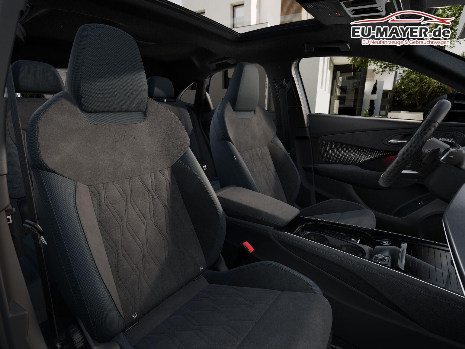• Interieur S line mit Sportsitzen Mikrofaser (Sportsitze vorn, Sitzmittelbahnen in Mikrofaser Schwarz, Sitzseitenwangen und Kopfstützen in Stoff, Kontrastnähte in Grau, Vordersitze in Rautenmuster, Mikrofaser Dinamica, Ambientebeleuchtung Pro, Ladekantenschutz in Edelstahl, Pedale in Edelstahl)