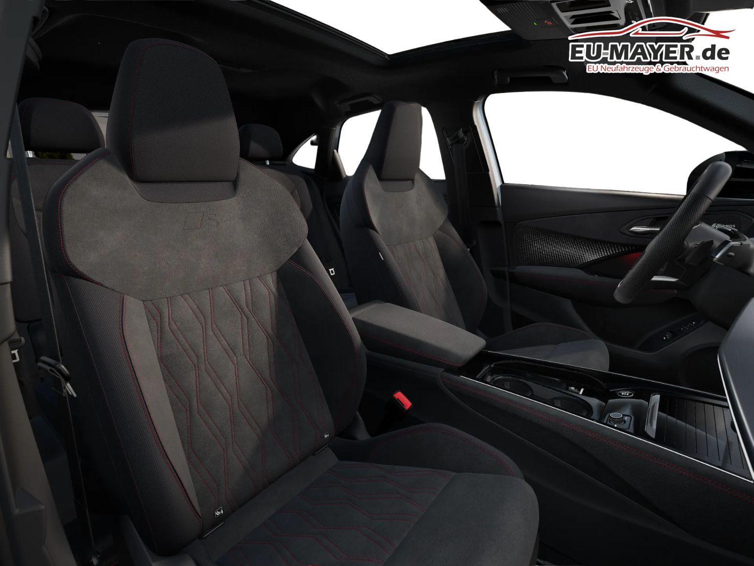 • Interieur S line mit Sportsitzen Mikrofaser (Sportsitze vorn, Sitzmittelbahnen in Mikrofaser Schwarz, Sitzseitenwangen und Kopfstützen in Stoff, Kontrastnähte in Grau, Vordersitze in Rautenmuster, Mikrofaser Dinamica, Ambientebeleuchtung Pro, Ladekantenschutz in Edelstahl, Pedale in Edelstahl)