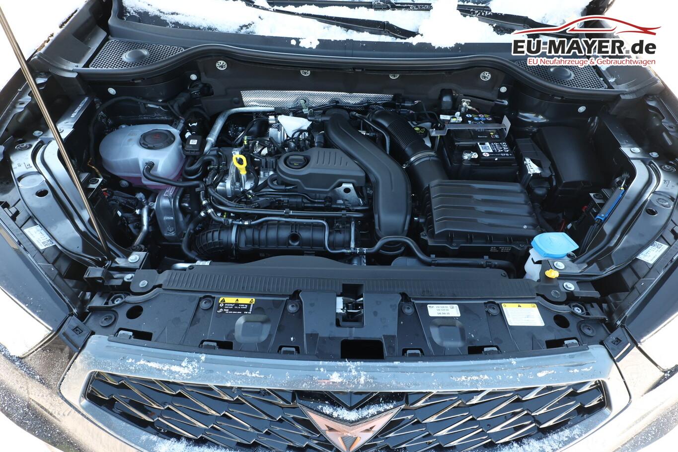 Fahrassistenz-Paket (Fahrassistenz-Paket: Travel Assist / Fahrassistenz-Paket: Stau- und Notfallassistent / Fahrassistenz-System: Autom. Distanzregelung (ACC / PCC) mit vorausschauender Geschw.-Regelung / Fahrassistenz-System: Automatische Distanzregelung (ACC) / Fahrassistenz-System: Fernlichtassistent / Fahrassistenz-System: Totwinkel-Assistent mit Auspark-Assistent, Spurwechselassistent und Ausstiegswarnung / Fahrassistenz-System: Pre-Crash-System), Heckklappe/-Deckel elektr. betätigt (öffnen + schliessen, sensorgesteuert), Winter-Paket (Sitzheizung vorn), Reserverad als Notrad, 8 Lautsprecher, Anschlussgarantie: 3 Jahre oder 100.000 km, Audio-Navigationssystem mit 9,2 Zoll Farb-Touchscreen, Bremssättel Schwarz, Dachhimmel Grau, Dachspoiler, Diebstahlsicherung Radschrauben, Fahrassistenz-System: Autom. Distanzregelung (ACC / PCC) mit vorausschauender Geschw. - Regelung, Fensterzierleisten Schwarz, Gepäckraumbeleuchtung LED, Handschuhfach abschließbar, Innenelemente: Dekoreinlagen Aluminium gebürstet, Lenkrad unten abgeflacht, LM-Felgen 19 Zoll (Exclusive Silver/Schwarz), Radioempfang Digital (DAB), Reifen 235/40 R19, Schadstoffarm nach Abgasnorm Euro 6e (EU6EA), Sicherheitsgurt-Kontrollsystem, Sitzbezug / Polsterung: Dinamica Velours/Kunstleder, Sprachsteuerung, Stau-/Ablagefach unter Sitz vorn rechts, Stoßfänger Sport, USB-Schnittstelle vorn (2-fach, Typ C), Licht- und Sicht-Paket (Innenspiegel mit Abblendautomatik / Licht- und Regensensor / Lichtassistent (Coming Home, Leaving Home)), Bluetooth-Schnittstelle mit Freisprecheinrichtung integriert (Bluetooth Audio-Streaming), Scheinwerfer Voll-LED (Leuchtweitenregelung automatisch), Ablagetasche an Vordersitzlehnen, Ambiente-Beleuchtung LED, Brillenfach, Einstiegsleisten (Aluminium) vorn, beleuchtet, Fußraumbeleuchtung LED, Handschuhfach mit LED-Beleuchtung, Karosserie: 5-türig, Kombiinstrument digital (virtual cockpit), Lendenwirbelstütze Sitz vorn links, verstellbar, Lendenwirbelstütze Sitz vorn rechts, verstellbar, Mittelarmlehne hinten, Mittelkonsole vorn mit Mittelarmlehne, Becherhalter, Ablagebox und Luftausströmer hinten, Mobile Online Dienste Cupra Connect plus, Motor 1,5 Ltr. - 110 kW 16V TSI ACT, Otto-Partikelfilter (OPF), Parkbremse elektrisch, Pedale Aluminium-Design, Radstand 2681 mm, Sitz vorn links höhenverstellbar, Sitz vorn rechts höhenverstellbar, Sonnenblende links mit Spiegel (beleuchtet), Sonnenblende rechts mit Spiegel (beleuchtet), Stau-/Ablagefach unter Sitz vorn links, Steckdose (12V-Anschluß) vorn, Full Link (MirrorLink, Apple CarPlay und Android Auto), USB-Ladeanschlüsse (2-fach, Typ C) für 2.Sitzreihe, Antriebsart: Frontantrieb, Elektron. Differentialsperre (XDS), Elektron. Stabilitätskontrolle (ESC), Wegfahrsperre (elektronisch), Getriebe 7-Gang - Doppelkupplungsgetriebe DSG, Klimaanlage Climatronic 2-Zonen, Airbag Beifahrerseite abschaltbar, Airbag Fahrer-/Beifahrerseite, Fensterheber elektrisch vorn + hinten mit Komfortschaltung, Isofix-Aufnahmen für Kindersitz an Rücksitz, Knieairbag Fahrerseite, Kopf-Airbag-System, Rücksitzlehne geteilt/klappbar (1/3-2/3), Schließ-/Startsystem Kessy, Seitenairbag, Seitenscheiben hinten und Heckscheibe abgedunkelt, Sport-Schalensitze vorn mit integrierten Kopfstützen, Zentralverriegelung mit Fernbedienung, Bordcomputer, Fahrassistenz-System: Fahrprofilauswahl (CUPRA Drive Profile), Dachreling schwarz, Fahrassistenz-System: Verkehrszeichenerkennung, Notrufsystem, Lenkrad heizbar (Sport/Leder) mit Multifunktion und Schaltfunktion, Servolenkung elektro-mechanisch, Außenspiegel elektr. verstell-, heiz- und anklappbar mit Spiegelabsenkung und Welcome Light, Heckleuchten LED mit dynamischem Blinklicht, Nebelscheinwerfer LED mit Abbiegelicht, Fahrassistenz-System: Parklenkassistent mit Einparkhilfe vorn und hinten inkl. Rückfahrkamera, Fahrassistenz-System: Müdigkeitserkennung, Fahrassistenz-System: Spurhalteassistent, Fahrassistenz-System: Umfeldbeobachtungssystem (Front assist) mit City-Notbremsfunktion, Start/Stop-Anlage