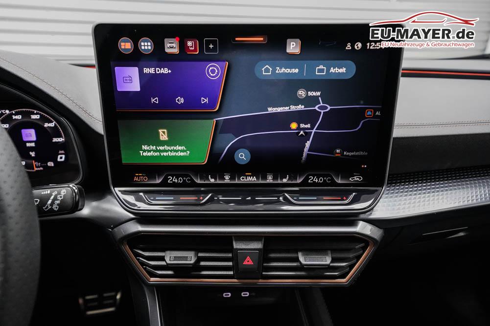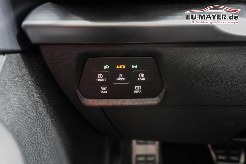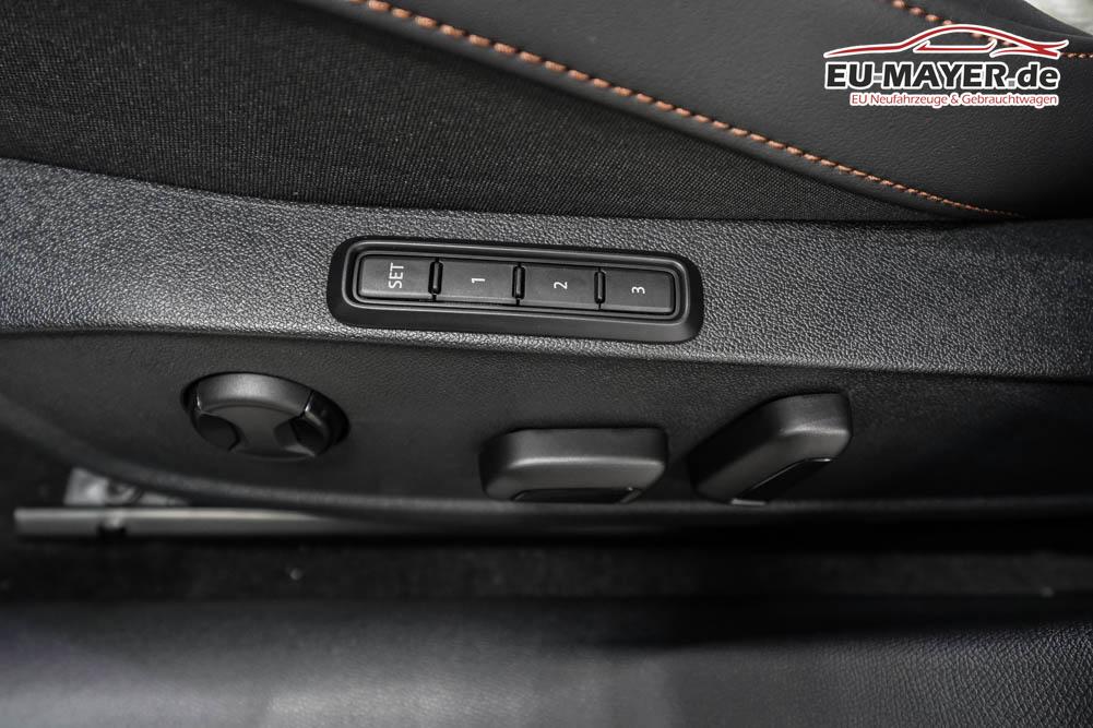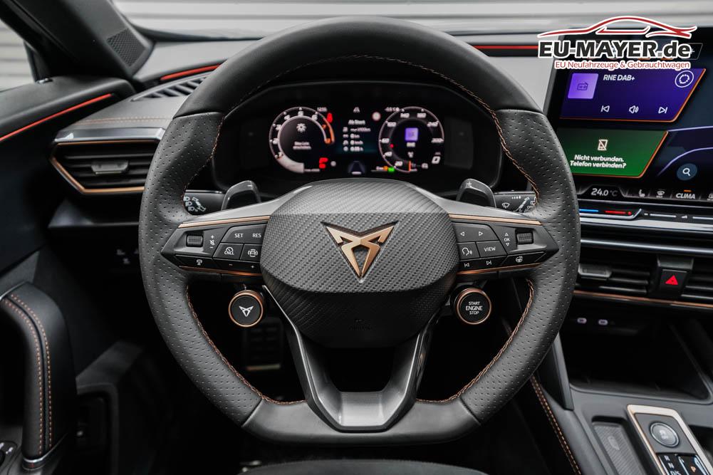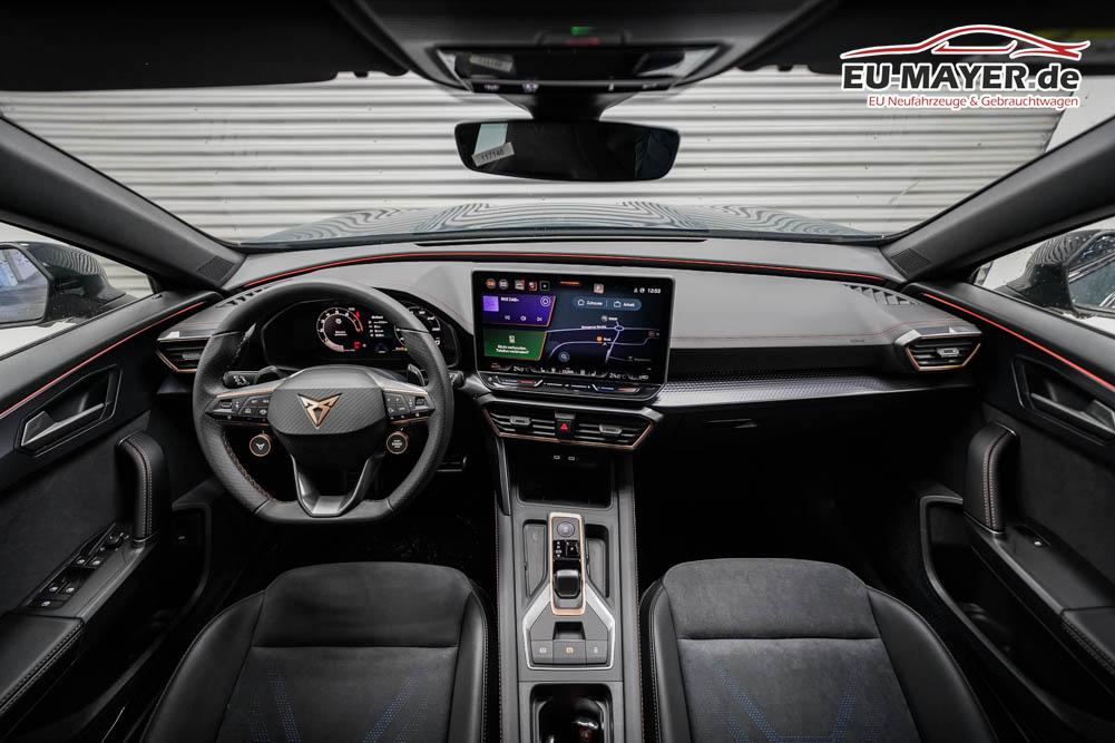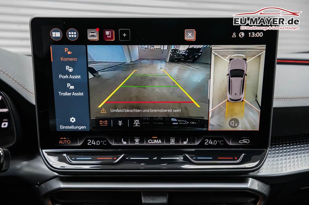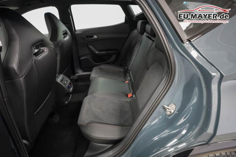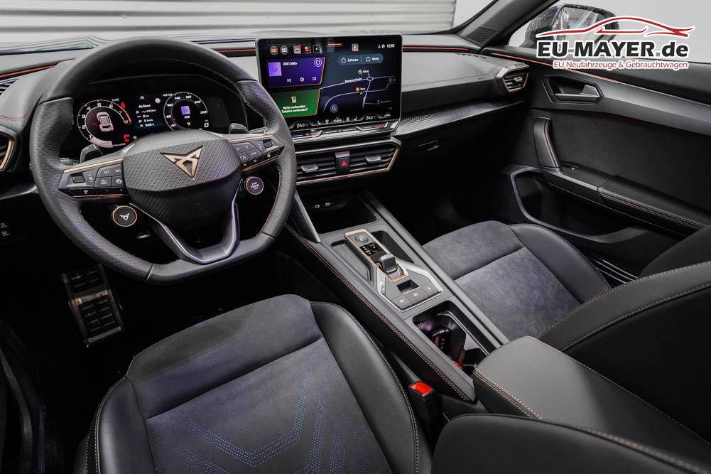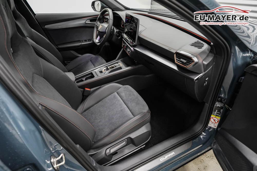 Beifahrersitz höhenverstellbar, Fahrersitz höhenverstellbar, Lederlenkrad, Lendenwirbelstütze, Mittelarmlehne vorne, Gepäckraumabdeckung, geteilt umklappbare Rücksitzlehne, Lenkrad höhenverstellbar, Sitzbezug Dinamica, Elektrisch verstellbarer Fahrersitz mit Memory, Beheizbares Lenkrad, Multifunktionslenkrad mit Satellitentasten, Isofix, Isofix Beifahrersitz, abgedunkelte Scheiben, 19 Zoll Alufelgen Sandstorm, Dachreling schwarz, ABS, Alarmanlage, Außenspiegel elektrisch, Fensterheber elektrisch, Kopfairbags, Nebelscheinwerfer, Seitenairbags, Servolenkung, Sitzheizung vorne, DCC, ESP, Wegfahrsperre, Zentralverriegelung mit Funk, Außenspiegel beheizbar, Beifahrerairbag, Fahrerairbag, Parkpilot hinten, Parkpilot vorne, Reifendruckkontrolle, Regensensor, Lichtsensor, Digital Cockpit, Anhängekupplung schwenkbar, Tempomat Abstand ACC, Fernlichtassistent, Spurhalteassistent plus, Totwinkelassistent, Verkehrszeichenerkennung, LED Matrix Scheinwerfer, Tagfahrlicht, Pannenset, Rückfahrkamera, Intelligent Park-Assistent, Elektrische Heckklappe inkl. Virtual Pedal, KeylessEntry, StartStopSystem, Innenspiegel automatisch abbl., Müdigkeitswarnsystem, Notrufsystem, Schaltwippen, Klimaautomatik 3-Zonen, 360-Grad-Kamera, Geschwindigkeitsbegrenzer, Android Auto, Apple Carplay, Freisprecheinrichtung, Induktionsladestation, Sprachsteuerung, USB, Radio DAB, Bluetooth, Bordcomputer, Radio-Navigationssystem, Cupra Full Link, Full Link, Schalensitze vorne, variabler Ladeboden, Exit Assist, Stauassistent, Pre-Crash, erweiterte Herstellergarantie 5 Jahre/100.000km,
