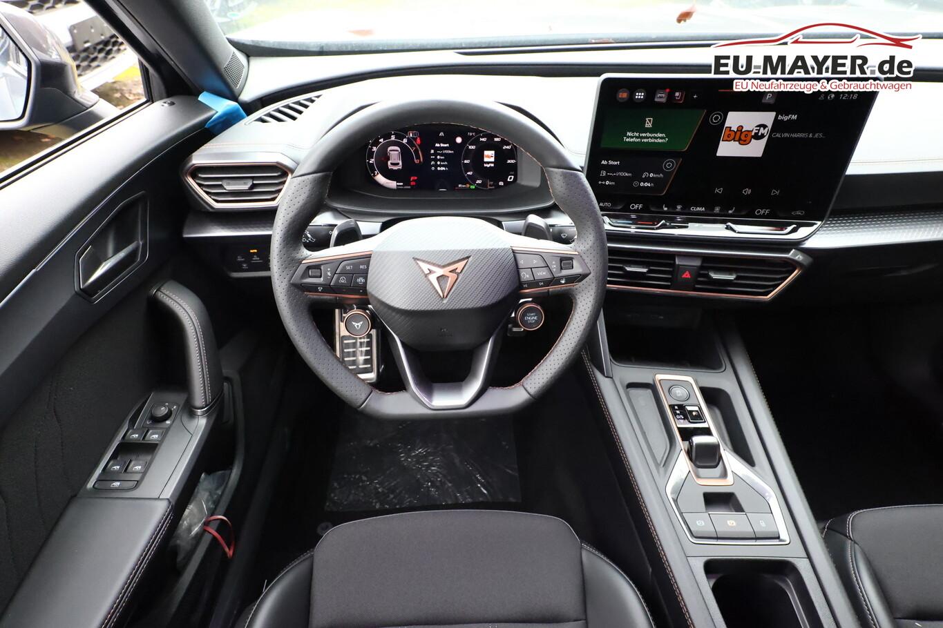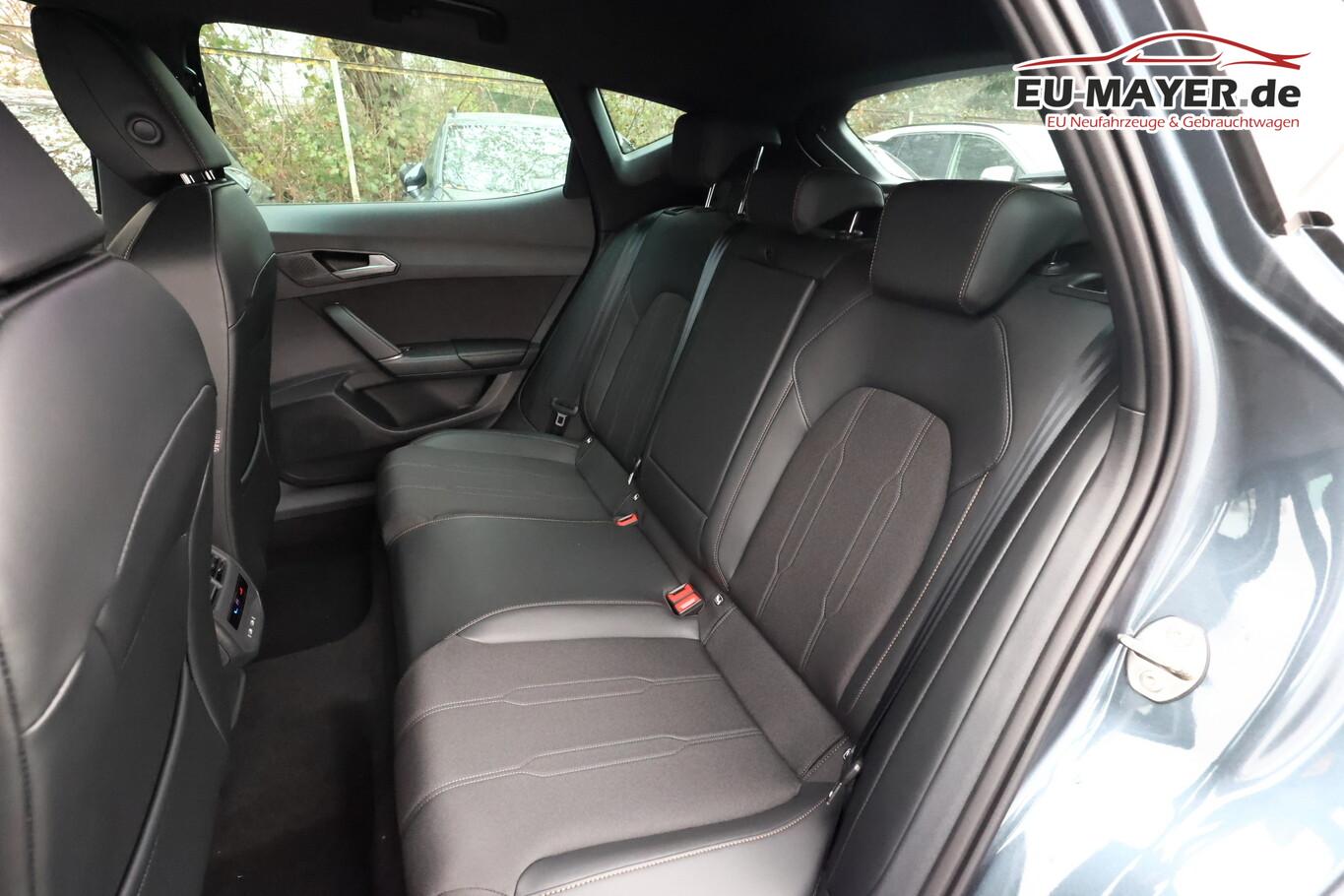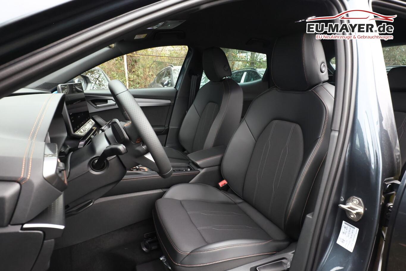 Edge-Paket (Ambiente-Beleuchtung LED / Ambiente-Beleuchtung Smart Ambient Light / Schließ-/Startsystem Kessy Advanced / Heckklappe/-Deckel elektr. betätigt (öffnen + schliessen, sensorgesteuert) / Rückfahrkamera / Diebstahl-Warnanlage mit Innenraumüberwachung und Abschleppschutz), Winter-Paket (Sitzheizung vorn), Anhängerkupplung Vorbereitung, Ablagetaschen an Vordersitzlehnen, Anschlussgarantie (3 Jahre / 100.000 km), Audio-Infotainmentsystem mit Touchscreen Farbbildschirm 12,9", Fahrassistenz-System: Ausweich- und Abbiegeassistent, Induktionsladeschale für Smartphone, Knieairbag vorn, LM-Felgen 8x18, Navigation in Verbindung mit dem Smartphone (über Apple Carplay / Android Auto /...), Navigationssystem Vorbereitung, Pedale Aluminium-Design, Reifen 245/45 R18, Schadstoffarm nach Abgasnorm Euro 6e (EU6 EA), Sprachsteuerungs-System, Tagfahrlicht, Wegfahrsperre elektrisch, Licht- und Sicht-Paket (Innenspiegel mit Abblendautomatik / Einschaltautomatik für Fahrlicht / Licht- und Regensensor / Lichtassistent (Coming Home, Leaving Home)), Voll-LED-Paket (Leuchtweitenregelung automatisch / Heckleuchten Voll-LED mit dynamischem Lichtband (Infinite Light) / Nebelscheinwerfer LED mit Abbiegelicht / Scheinwerfer Voll-LED), Abdeckkappen Außenspiegel Schwarz, Dachhimmel schwarz, Einstiegsleisten vorn beleuchtet, Fensterzierleisten schwarz, Gepäck-/Laderaumboden doppelt, Karosserie: 5-türig, Kombiinstrument digital (virtual cockpit), Lendenwirbelstütze Sitz vorn links, verstellbar, Lendenwirbelstütze Sitz vorn rechts, verstellbar, Leseleuchten hinten LED, Leseleuchten vorn LED, Mild-Hybrid 110 kW (Motor 1,5 Ltr. - 110 kW eTSI), Otto-Partikelfilter (OPF), Parkbremse elektrisch mit Auto-Hold-Funktion, Radioempfang digital (DAB+), Sitz vorn links höhenverstellbar, Sitz vorn rechts höhenverstellbar, Sitzbezug / Polsterung: Stoff/Kunstleder schwarz (Sharp Textil), Sonnenblende links mit Spiegel (beleuchtet), Sonnenblende rechts mit Spiegel (beleuchtet), Steckdose 230V im Gepäckraum, Warnanlage für Sicherheitsgurt-System, Full Link (MirrorLink, Apple CarPlay und Android Auto), USB-Ladeanschlüsse (2-fach, Typ C) für 2.Sitzreihe, USB-Schnittstelle vorn (2-fach, Typ C), Antriebsart: Frontantrieb, Elektron. Differentialsperre (XDS), Getriebe 7-Gang - Doppelkupplungsgetriebe DSG, Klimaanlage Climatronic 3-Zonen, Airbag Beifahrerseite abschaltbar, Airbag Fahrer-/Beifahrerseite, Fensterheber elektrisch vorn + hinten mit Komfortschaltung, Isofix-Aufnahmen für Kindersitz an Beifahrersitz und Rücksitz (inkl. i-Size-Kindersitze), Kopf-Airbag-System, Mittelarmlehne vorn, Rücksitzlehne geteilt/klappbar mit Mittelarmlehne und Durchladeeinrichtung, Seitenairbag, Seitenairbag vorn mitte (Central Airbag), Seitenscheiben ab 2.Sitzreihe und Heckscheibe dunkel getönt (Privacy Glass), Fahrassistenz-System: Fahrprofilauswahl (CUPRA Drive Profile), Dachreling schwarz, hochglänzend, Wärmeschutzverglasung, Fahrassistenz-System: Autom. Distanzregelung (ACC / PCC) mit vorausschauender Geschw.-Regelung, Fahrassistenz-System: Verkehrszeichenerkennung, Notrufsystem, Lenkrad heizbar (CUPRA Supersport, Leder) mit Multifunktion und Schaltfunktion, Außenspiegel elektr. verstell-, heiz- und anklappbar mit Spiegelabsenkung und Welcome Light, Fahrassistenz-System: Fernlichtassistent, Einparkhilfe vorn und hinten, Fahrassistenz-System: Müdigkeitserkennung, Fahrassistenz-System: Spurhalteassistent, Fahrassistenz-System: Umfeldbeobachtungssystem (Front assist) mit City-Notbremsfunktion, Reifenkontroll-Anzeige, Start/Stop-Anlage