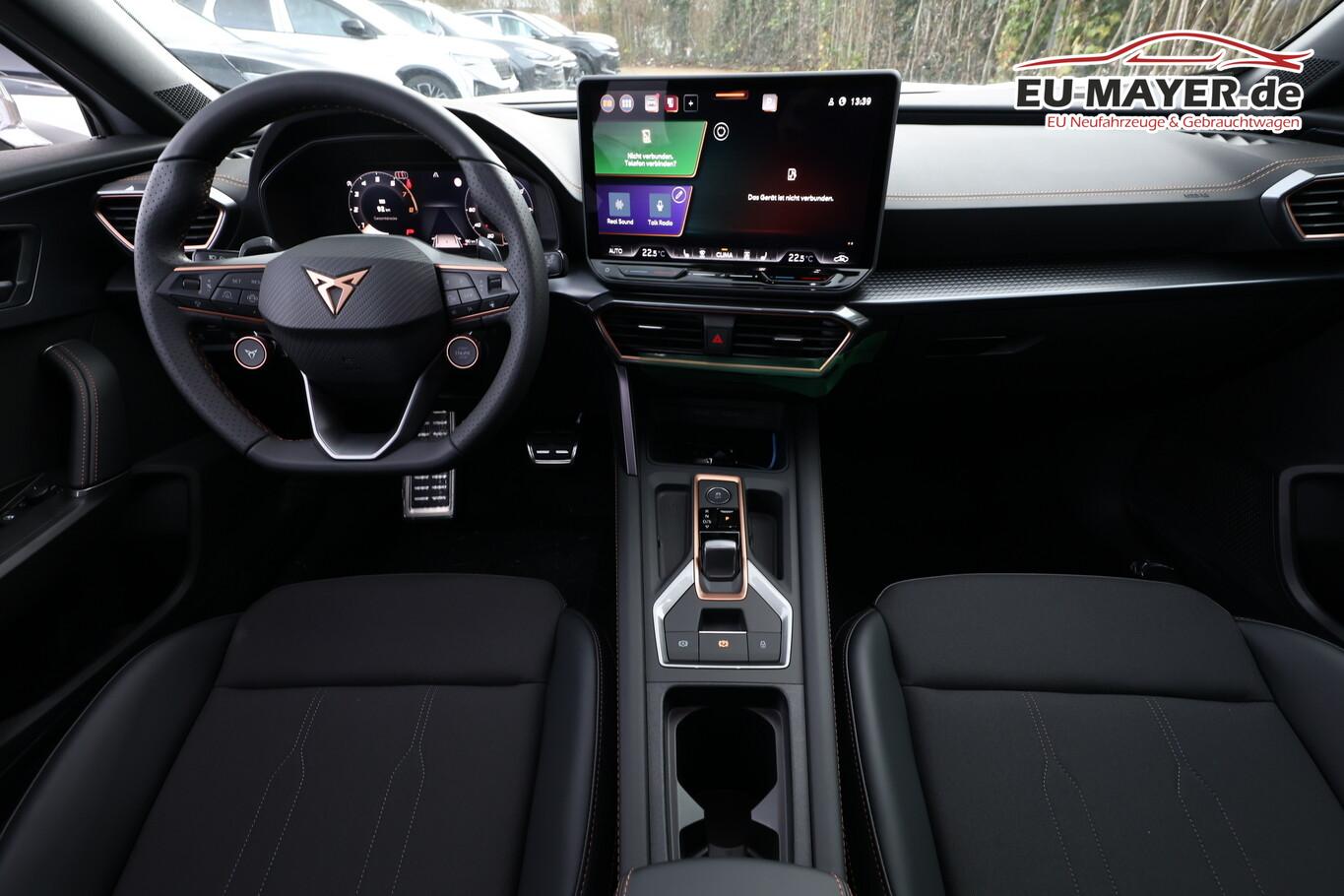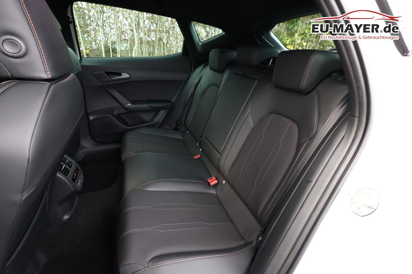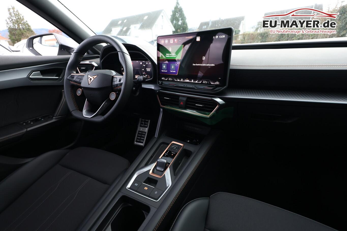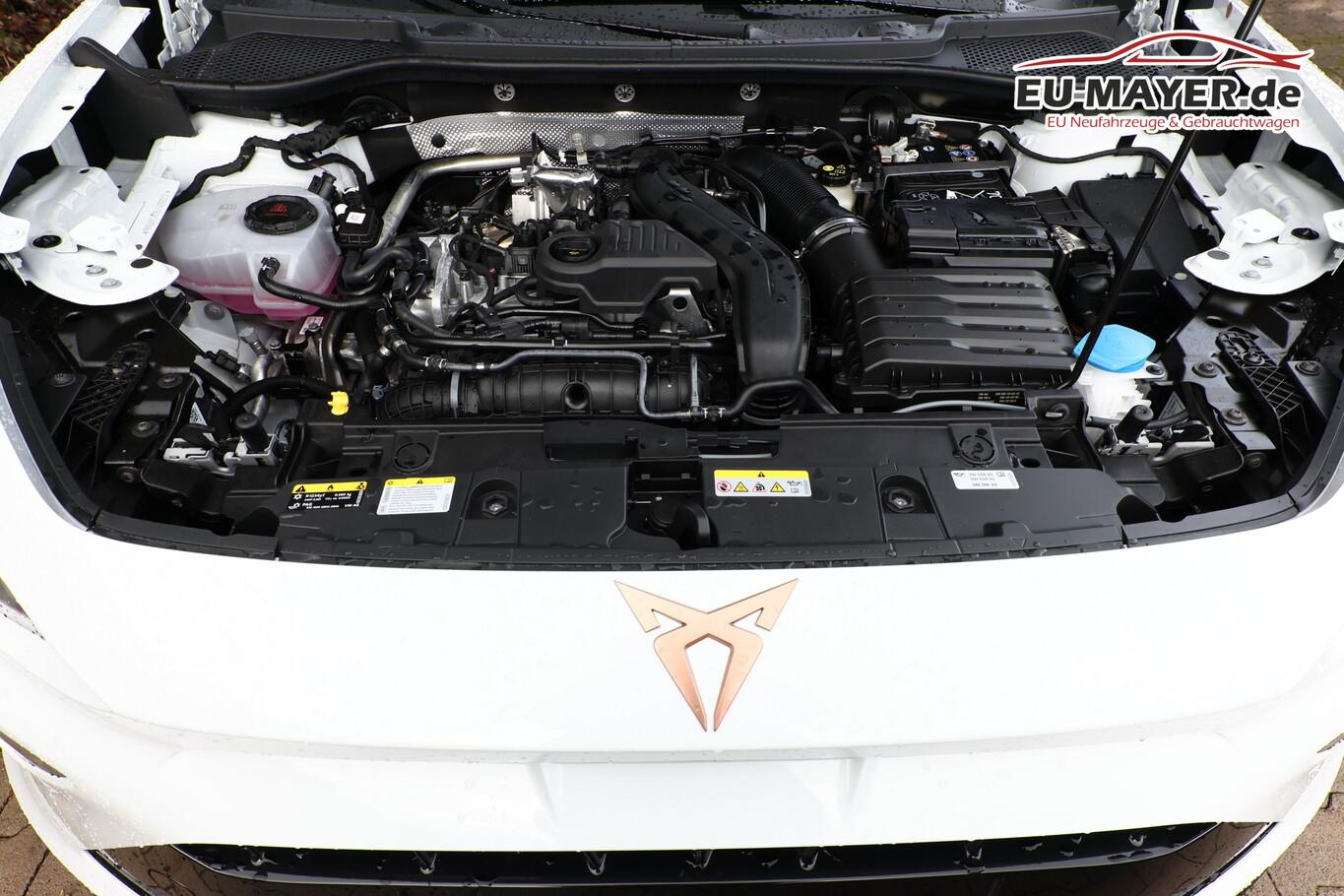 Edge-Paket (Ambiente-Beleuchtung LED / Ambiente-Beleuchtung Smart Ambient Light / Schließ-/Startsystem Kessy Advanced / Heckklappe/-Deckel elektr. betätigt (öffnen + schliessen, sensorgesteuert) / Rückfahrkamera / Diebstahl-Warnanlage mit Innenraumüberwachung und Abschleppschutz), Winter-Paket (Sitzheizung vorn), Anhängerkupplung Vorbereitung, Ablagetaschen an Vordersitzlehnen, Audio-Infotainmentsystem mit Touchscreen Farbbildschirm 12,9", Fahrassistenz-System: Ausweich- und Abbiegeassistent, Induktionsladeschale für Smartphone, Knieairbag vorn, LM-Felgen 8x18, Navigation in Verbindung mit dem Smartphone (über Apple Carplay / Android Auto /...), Navigationssystem Vorbereitung, Pedale Aluminium-Design, Reifen 245/45 R18, Schadstoffarm nach Abgasnorm Euro 6e (EU6 EA), Sprachsteuerungs-System, Tagfahrlicht, Wegfahrsperre elektrisch, Licht- und Sicht-Paket (Innenspiegel mit Abblendautomatik / Einschaltautomatik für Fahrlicht / Licht- und Regensensor / Lichtassistent (Coming Home, Leaving Home)), Voll-LED-Paket (Leuchtweitenregelung automatisch / Heckleuchten Voll-LED mit dynamischem Lichtband (Infinite Light) / Nebelscheinwerfer LED mit Abbiegelicht / Scheinwerfer Voll-LED), Abdeckkappen Außenspiegel Schwarz, Dachhimmel schwarz, Einstiegsleisten vorn beleuchtet, Fensterzierleisten schwarz, Gepäck-/Laderaumboden doppelt, Karosserie: 5-türig, Kombiinstrument digital (virtual cockpit), Lendenwirbelstütze Sitz vorn links, verstellbar, Lendenwirbelstütze Sitz vorn rechts, verstellbar, Leseleuchten hinten LED, Leseleuchten vorn LED, Mild-Hybrid 110 kW (Motor 1,5 Ltr. - 110 kW eTSI), Otto-Partikelfilter (OPF), Parkbremse elektrisch mit Auto-Hold-Funktion, Radioempfang digital (DAB+), Sitz vorn links höhenverstellbar, Sitz vorn rechts höhenverstellbar, Sitzbezug / Polsterung: Stoff/Kunstleder schwarz (Sharp Textil), Sonnenblende links mit Spiegel (beleuchtet), Sonnenblende rechts mit Spiegel (beleuchtet), Steckdose 230V im Gepäckraum, Warnanlage für Sicherheitsgurt-System, Full Link (MirrorLink, Apple CarPlay und Android Auto), USB-Ladeanschlüsse (2-fach, Typ C) für 2.Sitzreihe, USB-Schnittstelle vorn (2-fach, Typ C), Antriebsart: Frontantrieb, Elektron. Differentialsperre (XDS), Getriebe 7-Gang - Doppelkupplungsgetriebe DSG, Klimaanlage Climatronic 3-Zonen, Airbag Beifahrerseite abschaltbar, Airbag Fahrer-/Beifahrerseite, Fensterheber elektrisch vorn + hinten mit Komfortschaltung, Isofix-Aufnahmen für Kindersitz an Beifahrersitz und Rücksitz (inkl. i-Size-Kindersitze), Kopf-Airbag-System, Mittelarmlehne vorn, Rücksitzlehne geteilt/klappbar mit Mittelarmlehne und Durchladeeinrichtung, Seitenairbag, Seitenairbag vorn mitte (Central Airbag), Seitenscheiben ab 2.Sitzreihe und Heckscheibe dunkel getönt (Privacy Glass), Fahrassistenz-System: Fahrprofilauswahl (CUPRA Drive Profile), Dachreling schwarz, hochglänzend, Wärmeschutzverglasung, Fahrassistenz-System: Autom. Distanzregelung (ACC / PCC) mit vorausschauender Geschw.-Regelung, Fahrassistenz-System: Verkehrszeichenerkennung, Notrufsystem, Lenkrad heizbar (CUPRA Supersport, Leder) mit Multifunktion und Schaltfunktion, Außenspiegel elektr. verstell-, heiz- und anklappbar mit Spiegelabsenkung und Welcome Light, Fahrassistenz-System: Fernlichtassistent, Einparkhilfe vorn und hinten, Fahrassistenz-System: Müdigkeitserkennung, Fahrassistenz-System: Spurhalteassistent, Fahrassistenz-System: Umfeldbeobachtungssystem (Front assist) mit City-Notbremsfunktion, Reifenkontroll-Anzeige, Start/Stop-Anlage