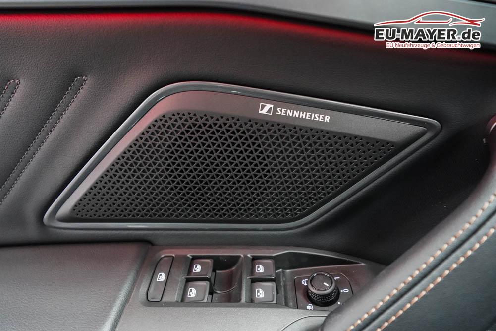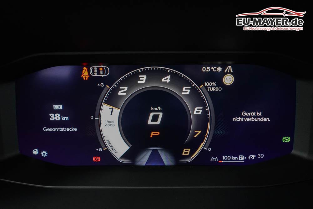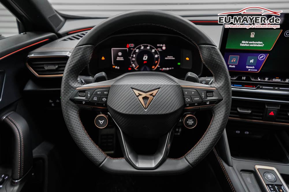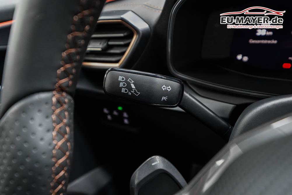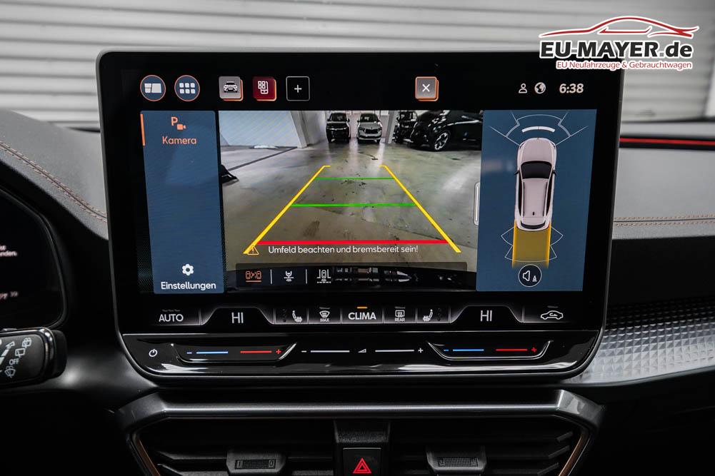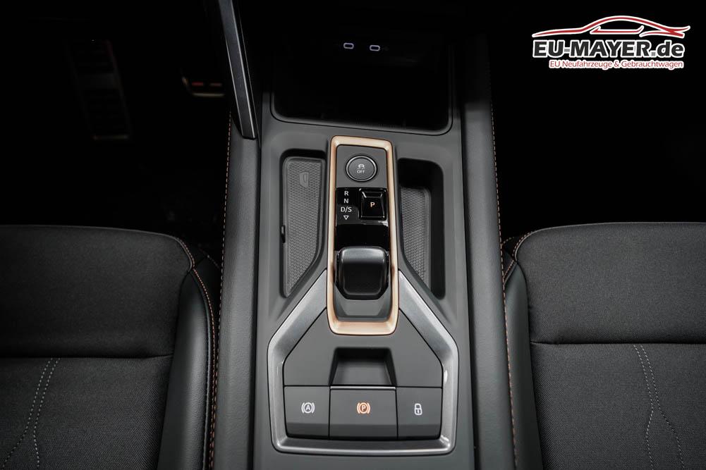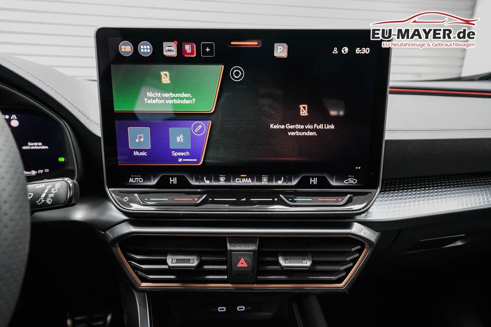 Beifahrersitz höhenverstellbar, Fahrersitz höhenverstellbar, Lederlenkrad, Lendenwirbelstütze, Mittelarmlehne vorne, Sitzbezug Stoff, geteilt umklappbare Rücksitzlehne, Lenkrad höhenverstellbar, Smart Wraparound Interieur Light, Beheizbares Lenkrad, Multifunktionslenkrad, Isofix, Isofix Beifahrersitz, abgedunkelte Scheiben, 18 Zoll Alufelgen , Dachreling schwarz, ABS, Alarmanlage, Außenspiegel elektrisch einstell-/anklappbar, Fensterheber elektrisch, Kopfairbags, Nebelscheinwerfer, Seitenairbags, Servolenkung, Sitzheizung, ESP, Wegfahrsperre, Außenspiegel beheizbar, Beifahrerairbag, Fahrerairbag, Parkpilot hinten, Parkpilot vorne, Reifendruckkontrolle, Regensensor, Lichtsensor, Digital Cockpit, Anhängekupplung schwenkbar, Tempomat Abstand ACC, Spurhalteassistent, Verkehrszeichenerkennung, LED-Scheinwerfer, Tagfahrlicht, Rückfahrkamera, Elektrische Heckklappe inkl. Virtual Pedal, KeylessEntry, StartStopSystem, Innenspiegel automatisch abbl., Müdigkeitswarnsystem, Notrufsystem, Schaltwippen, Klimaautomatik 3-Zonen, Geschwindigkeitsbegrenzer, Android Auto, Apple Carplay, Freisprecheinrichtung, Induktionsladestation, Sprachsteuerung, USB, Radio, Radio DAB, Bluetooth, Bordcomputer, IMMERSIVE by Sennheiser, Cupra Full Link, Full Link, variabler Ladeboden,