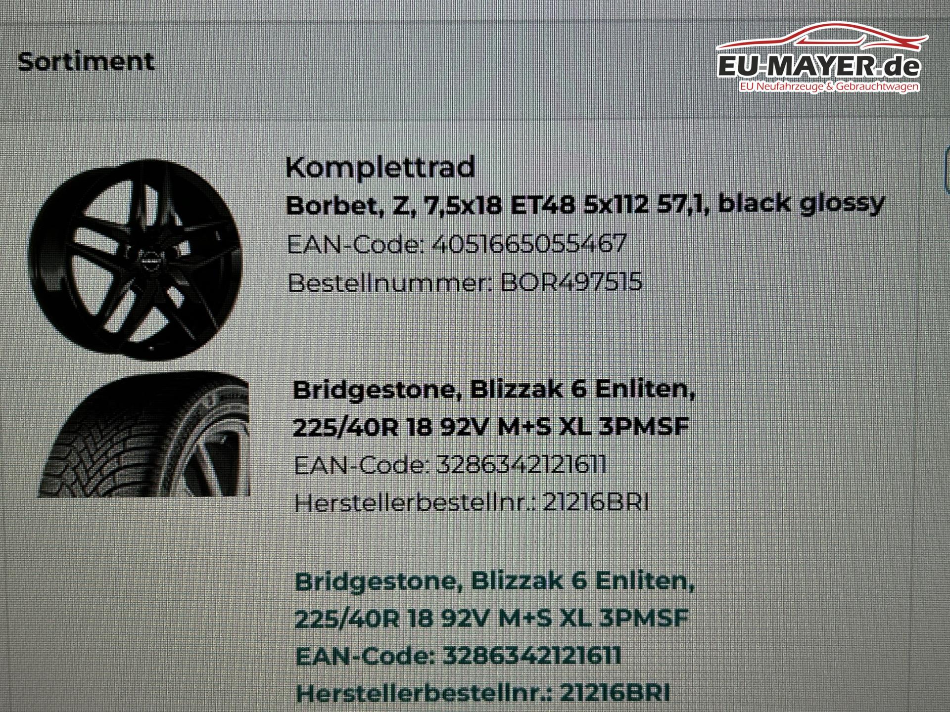 mit Reifen Bridgestone, Blizzak 6 Enliten, 225/40R 18 92V M+S