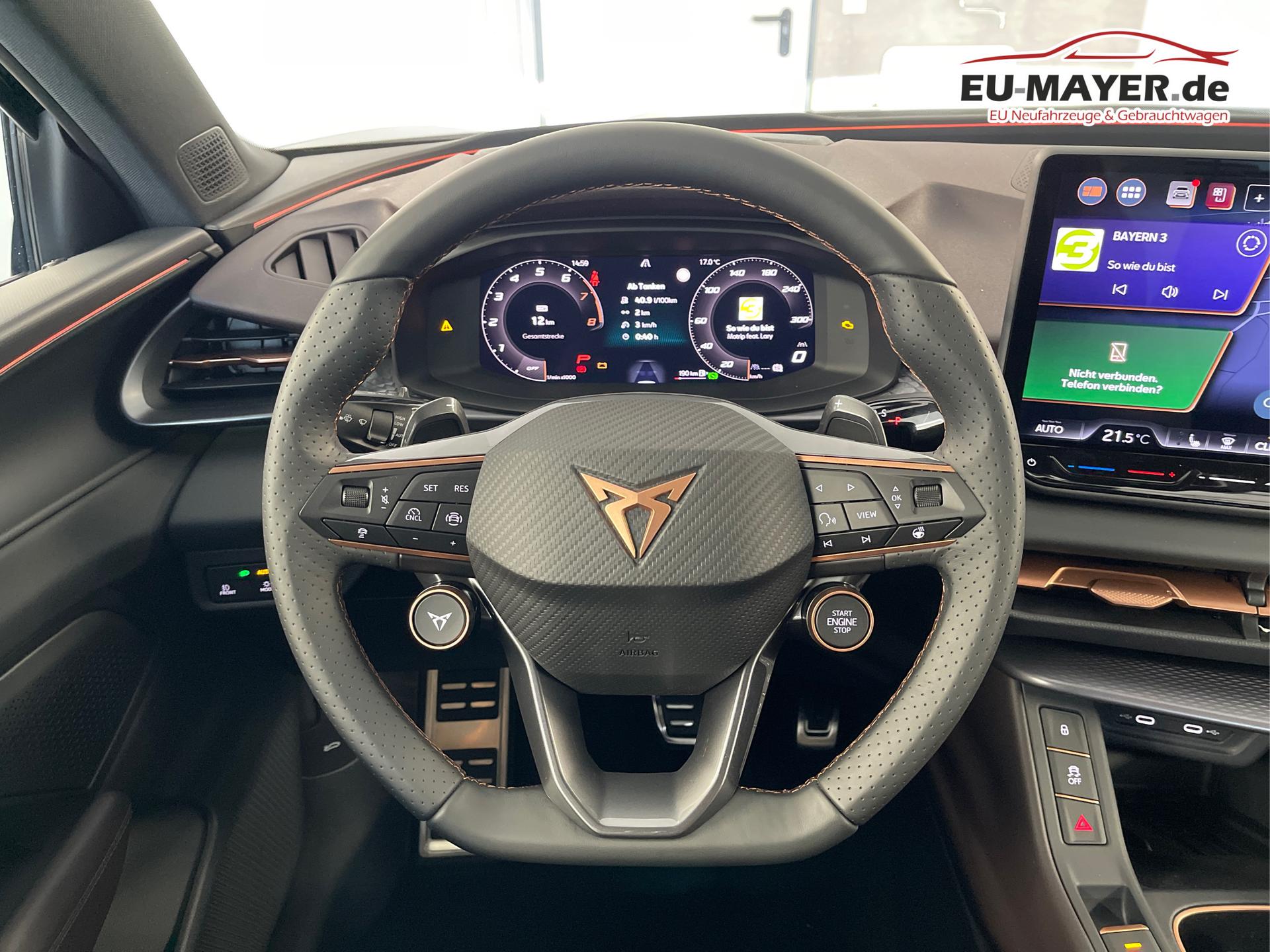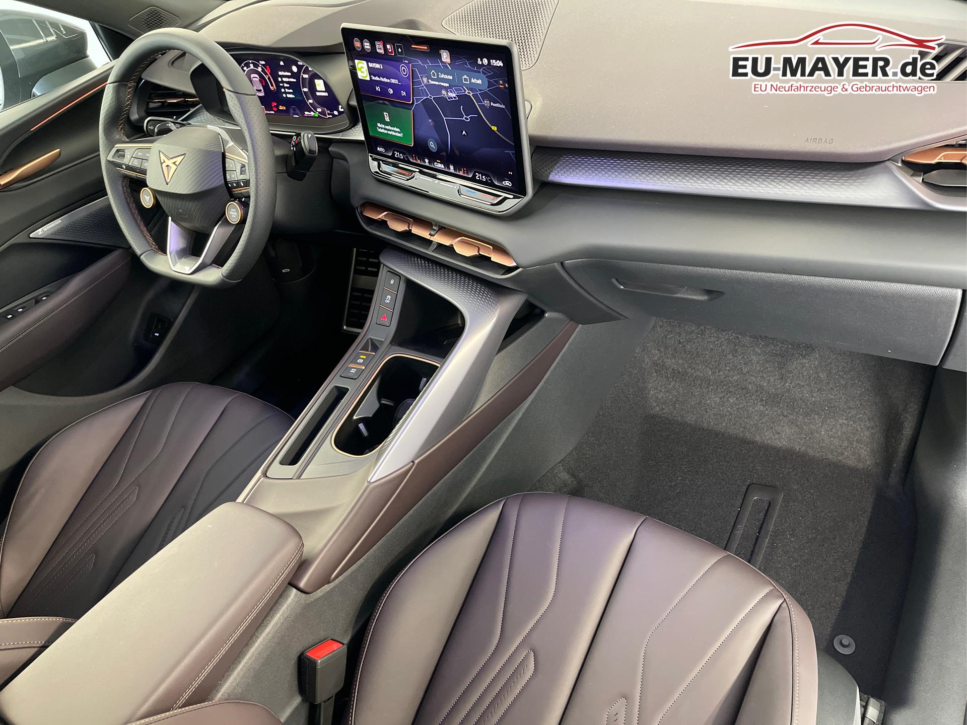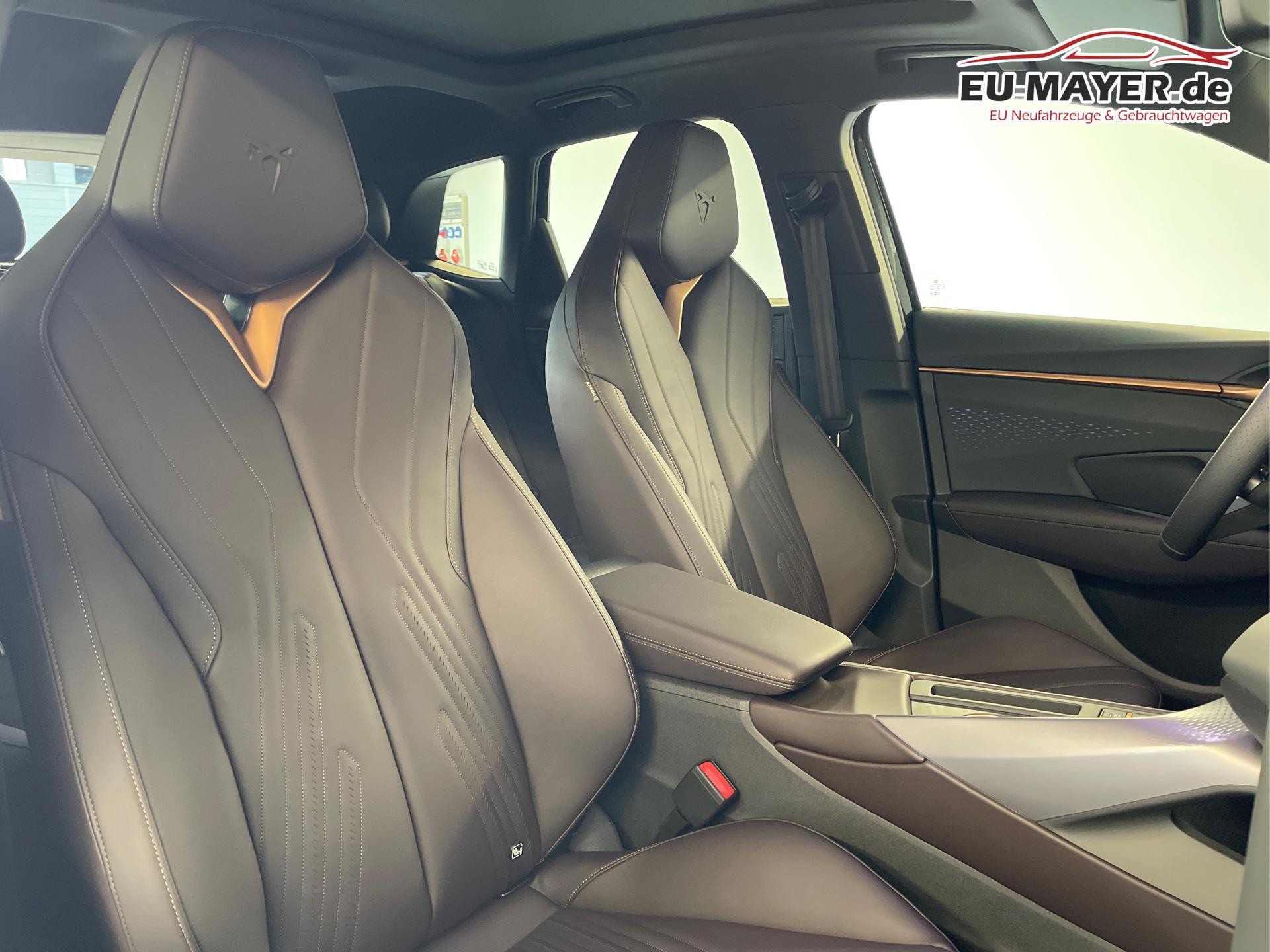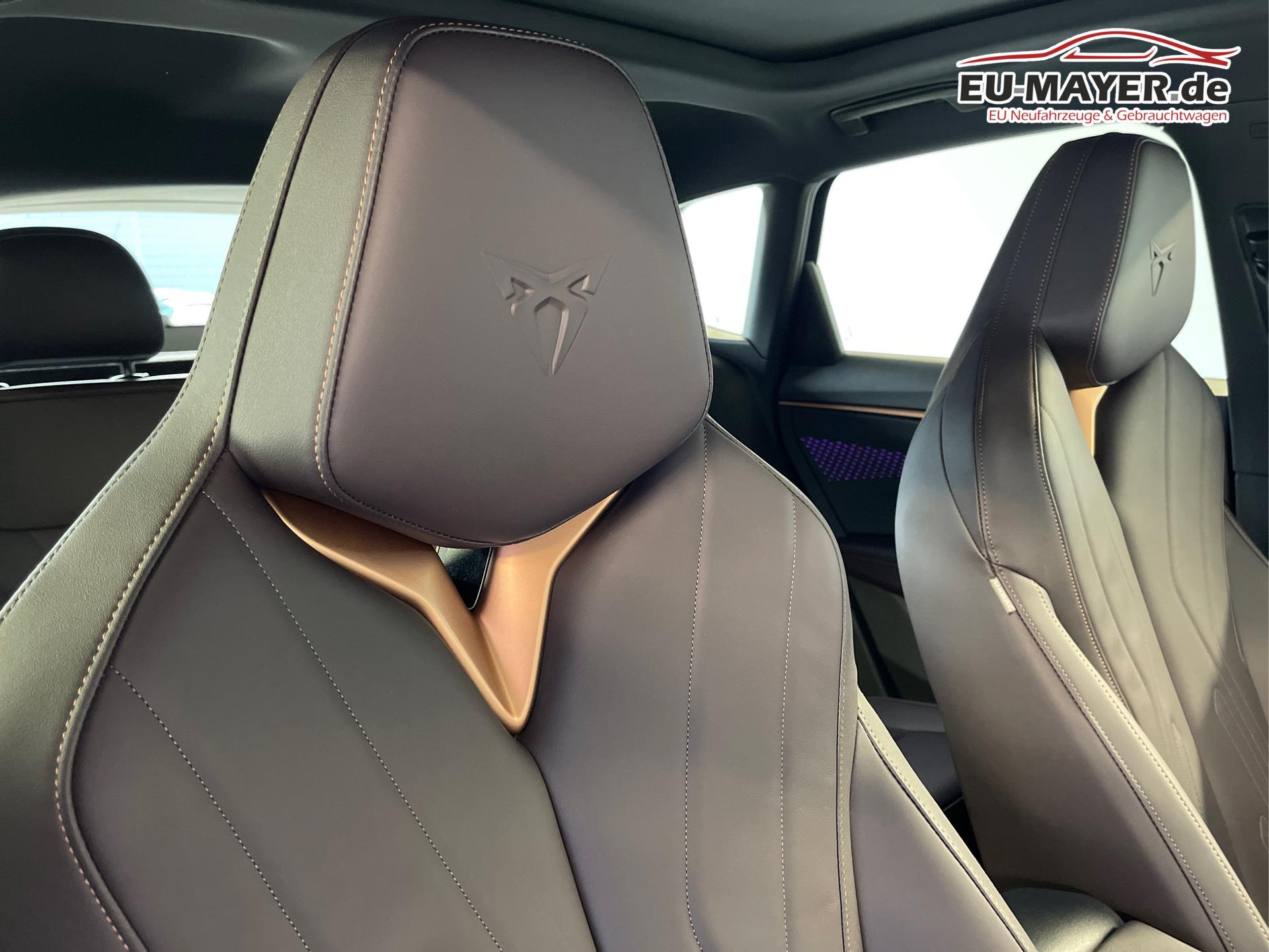 • USB-C Schnittstelle, Dreipunkt-Sicherheitsgurte, Klimaautomatik 3-Zonen-Climatronic, Adaptive Dämpferregelung DCC, Adaptive Geschwindigkeitsregelung ACC (Geschwindigkeitsregelanlage inkl. Geschwindigkeitsbegrenzung), Diebstahlwarnanlage mit Innenraumüberwachung, Ambientebeleuchtung Plus, Außenspiegel elektrisch einstell- und beheizbar, Außenspiegel elektrisch anklappbar, Ausweichassistent, Abbiegeassistent, CUPRA CONNECT 3.0, CUPRA Emblem am Lenkrad, CUPRA Fahrprofilauswahl, CUPRA Wireless App-Connect, Dachhimmel Schwarz, Dachreling Schwarz glänzend, Notrufsystem eCall, Handbremse elektronisch mit Auto-Hold-Funktion, Fensterheber vorn und hinten elektrisch, Front Assist, Warnsignal bei nicht angelegten Sicherheitsgurten, Heckklappe elektrisch, Heckscheiben, Wisch-Waschanlage, Scheibenwischer-Intervallschaltung, Induktionsladen für Smartphones, Kessy (Schlüsselloses Schließ- und Startsystem), Isofix, Kopfstützen, Airbag für Fahrer und Beifahrer, Beifahrerairbag-Deaktivierung, Seitenairbag vorn mit Kopfairbag, Kreuzungsassistent, variabler Ladeboden, LED-Nebelscheinwerfer mit Abbiegelicht, LED-Rückleuchten in 3D-Optik, LED-Leseleuchten vorn und hinten, Mittelarmlehne vorne, Müdigkeitserkennung, Ablenkungserkennung, Multifunktions-Lederlenkrad beheizbar, ParkPilot vorn und hinten, Pedale in Aluminium-Optik, Progressivlenkung, Regensensor, Lichtsensor, Reifendruckkontrolle, Rückfahrkamera, Rücksitzlehne geteilt umklappbar, Scheiben ab der B-Säule abgedunkelt, Make-up-Spiegel in den Sonnenblenden, Sport-Schalensitze vorn, Sprachbedienung, Spurhalteassistent, Stoßfänger im CUPRA-Design, Tire-Mobility-Set, Verkehrszeichenerkennung, Vordersitze höhenverstellbar, Wärmeschutzverglasung, Wegfahrsperre elektronisch, Welcome Light im Außenspiegel, Wischwasserstandanzeige, Zentralairbag zwischen den Vordersitzen, Servolenkung, Zentralverriegelung mit Funkfernbedienung, Freisprecheinrichtung Bluetooth