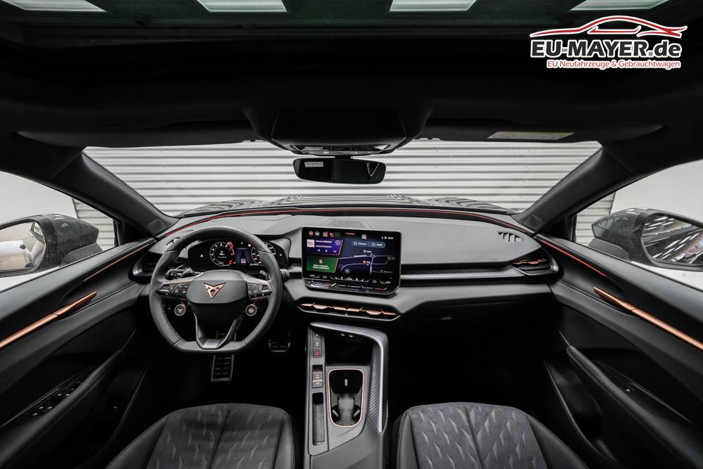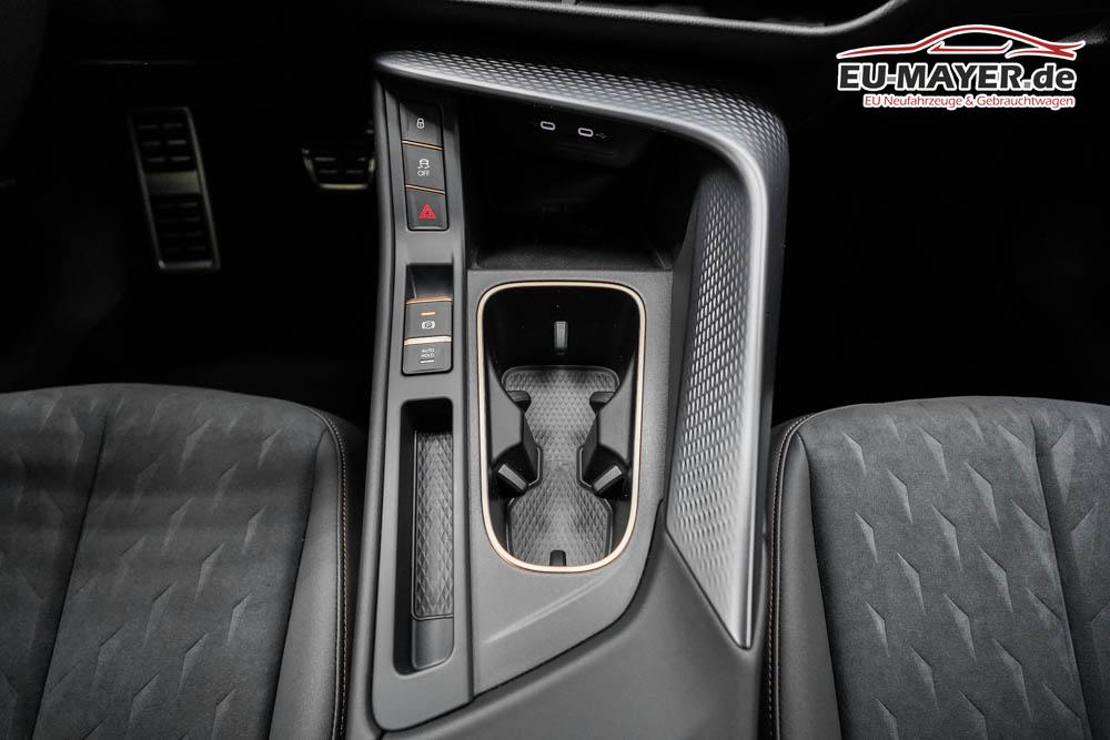 Beifahrersitz höhenverstellbar, Fahrersitz höhenverstellbar, Sport-Lederlenkrad, Lendenwirbelstütze elektr. vorne, Mittelarmlehne vorne, Sportsitze vorne, Gepäckraumabdeckung, geteilt umklappbare Rücksitzlehne, Lenkrad höhenverstellbar, Sitzbezug Dinamica, Ambiente-Beleuchtung, Elektrisch verstellbare Vordersitze, Beheizbares Lenkrad, Multifunktionslenkrad, Isofix, Isofix Beifahrersitz, abgedunkelte Scheiben, 20 Zoll Alufelgen Hadron Copper Z0E, Dachreling schwarz, Außenspiegel in Wagenfarbe, Stoßfänger in Wagenfarbe, Türgriffe in Wagenfarbe, ABS, Alarmanlage, Außenspiegel elektrisch einstell-/anklappbar, Fensterheber elektrisch, Kopfairbags, Nebelscheinwerfer, Schiebedach, Seitenairbags, Servolenkung, Sitzheizung vorne, Adaptive Fahrwerksregelung DCC, ESP, Wegfahrsperre, Zentralverriegelung mit Funk, Außenspiegel beheizbar, Beifahrerairbag, Fahrerairbag, Parkpilot hinten, Parkpilot vorne, Reifendruckkontrolle, Head-up Display, Regensensor, Lichtsensor, Digital Cockpit, Tempomat Abstand ACC, Notbremsassistent, Spurhalteassistent, Totwinkelassistent, Verkehrszeichenerkennung, Matrix-Beam LED-Scheinwerfer, LED-Tagfahrlicht, Pannenset, Rückfahrkamera, Park-Assistent, Panoramadach, Elektrische Heckklappe inkl. Virtual Pedal, Keyless Advanced - Schlüsselloses Schließ- und Startsystem, StartStopSystem, Innenspiegel automatisch abbl., Müdigkeitswarnsystem, Notrufsystem, Schaltwippen, Klimaautomatik 3-Zonen, 360-Grad-Kamera, Android Auto, Apple Carplay, Freisprecheinrichtung, Induktionsladestation, Sprachsteuerung, Touchscreen, USB Typ-C, Radio DAB, Bluetooth, Bordcomputer, Navigationssystem, Vorbereitung für Anhängevorrichtung, Fahrersitz mit Memory, Emergency Assist, Stauassistent, Wired and Wireless App-Connect, 5 Jahre bis max. 100.000km Herstellergarantie, variabler Ladeboden, Ausweichunterstützung mit Abbiegeassistent, LED-Rückleuchten,