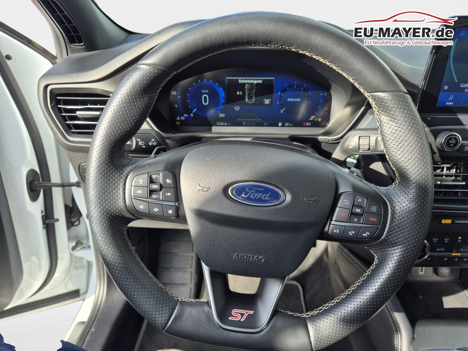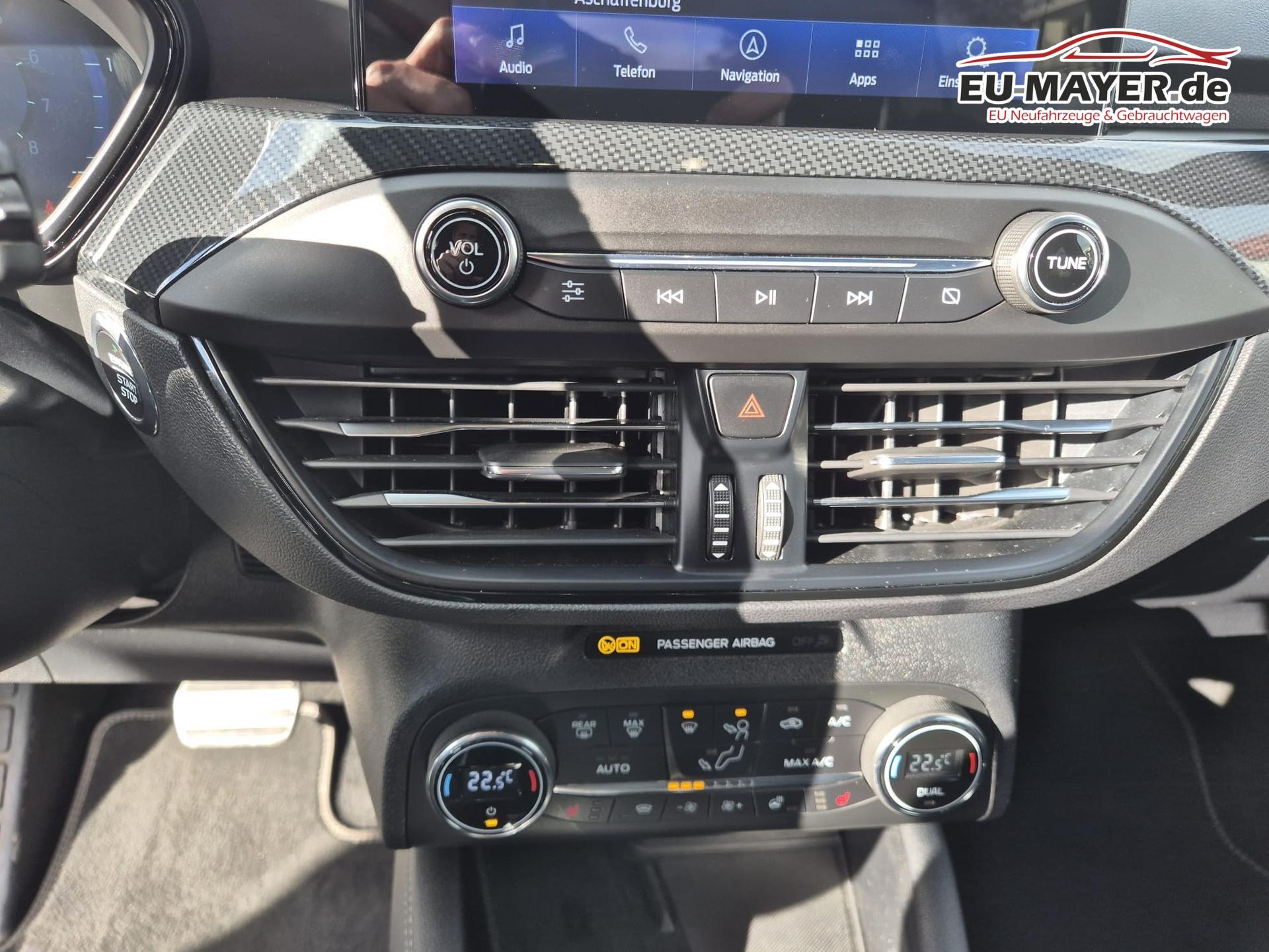 Airbag Beifahrerseite abschaltbar, Antischlupfregelung (ASR), Audio-Navigationssystem Ford mit AppLink, Außenspiegel elektr. anklappbar, Außenspiegel elektr. verstell- und heizbar, Blinkleuchte in Außenspiegel integriert, Body-Styling-Paket, Bord-/Verbrauchscomputer, Dachhimmel Stoff, dunkel, Dachspoiler (große Ausführung) Wagenfarbe, Dimmer Instrumentenbeleuchtung, Doppelendrohr Auspuffanlage, Elektr. Bremskraftverteilung (EBD), Elektron. Differentialsperre (EDS), Fahrassistenz-System: Berganfahr-Assistent (Hill-Holder), Fahrassistenz-System: Notbrems-Assistent, Fahrassistenz-System: Post-Collision-System, Fahrassistenz-System: Pre-Collision-System, Fahrassistenz-System: Spurhalteassistent, Farbdisplay für Bordcomputer, Fensterheber elektrisch vorn + hinten mit Komfortschließung, FordPass Connect inkl. eCall, Fußmatten Velours - vorn, Gepäckraumabdeckung / Rollo, Getriebe Automatik - Typ: 8F40 (7-Stufen), Innenraumfilter: Staub- und Pollenfilter, Innenspiegel mit Abblendautomatik, Intelligent Protection System (IPS), Intelligenter Geschwindigkeits-Begrenzer, Interaktives Fahrwerkssystem (IVDC), Isofix-Aufnahmen für Kindersitz, Karosserie: 5-türig, Klimaautomatik 2-Zonen, Kombiinstrument Digitalanzeige 12,3 Zoll, Kopfstützen hinten mechan. verstellbar (3 Stück), Kopfstützen vorn 4-fach verstellbar, Lenkrad (Sport/Leder, ST), Lenkrad mit Schaltwippen, Lenksäule (Lenkrad) höhen-/längsverstellbar, LM-Felgen, Mittelkonsole Premium, Motor 2,3 Ltr. - 206 kW EcoBoost KAT, My Key (2. Fahrzeugschlüssel programmierbar), Otto-Partikelfilter (OPF), Parkbremse elektrisch mit Auto-Hold-Funktion, Parkpilotsystem vorn und hinten, Pedale Aluminium, Reifen-Reparaturkit, Reifendruck-Kontrollsystem, Rücksitzlehne geteilt/klappbar (60:40), Schadstoffarm nach Abgasnorm Euro 6d-TEMP, Schalt-/Wählhebelgriff Aluminium, Schaltpunktanzeige, Scheinwerfer mit abgedunkelten Hintergrund, Scheinwerfer mit Ausschaltverzögerung, Scheinwerfer-Assistent mit Tag-/Nachtsensor, Sonnenblende links mit Spiegel, Sonnenblende rechts mit Spiegel, Start/Stop-Anlage, Verglasung getönt, Warnanlage für Sicherheitsgurte hinten, Warnanlage für Sicherheitsgurte vorn