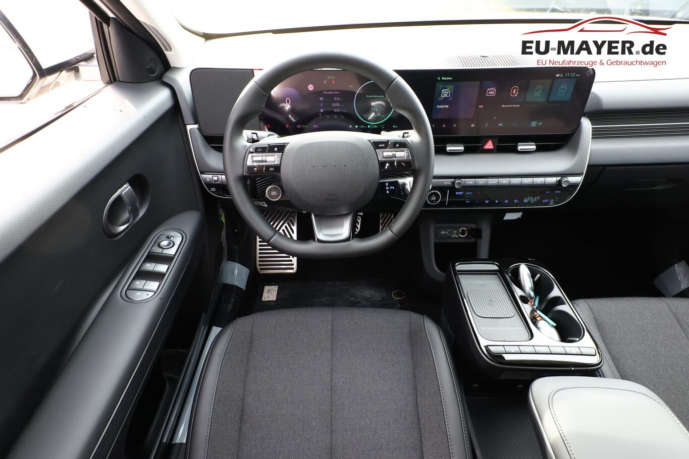 Ambientebeleuchtung, Fahrassistenz-System: Spurwechselassistent, Fahrassistenz-System: Totwinkel-Assistent (BCA), Kein Ladekabel vorhanden, LED-Scheinwerfer, LM-Felgen 19 Zoll, Reifen 235/55 R19, SmartLink (Apple CarPlay & Android Auto), Dachspoiler (grosse Ausführung) (3. Bremsleuchte), Audio-Navigationssystem (Touchscreen-Farbdisplay (12,25 Zoll)), Lenkrad (Leder) 3-Speichen (Lenkrad heizbar / Lenkrad (Leder) / Lenkrad (Leder) mit Multifunktion), Fahrassistenz-System: Einparkhilfe vorn und hinten (Einparkhilfe hinten), Fahrassistenz-System: Autonome Notbremsfunktion inkl. Frontkollisionswarnung (FCA) (Fahrassistenz-System: Ausweich-Assistent (Evasive Steer Assistance, ESA) / Fahrassistenz-System: Ausweich-Assistent Fahrtrichtung (FCA-LS) / Fahrassistenz-System: Ausweich-Assistent Gegenverkehr (FCA-LO) / Fahrassistenz-System: Autonome Notbremsfunktion inkl. Abbiegefunktion (FCA-JT) / Fahrassistenz-System: Autonome Notbremsfunktion inkl. Fahrradfahrererkennung (FCA-Cyc.) / Fahrassistenz-System: Autonome Notbremsfunktion inkl. Fußgängererkennung (FCA-Ped.) / Fahrassistenz-System: Querverkehrs-Assistent vorn (Kreuzungs-Assistent)), Außenspiegel Unterschale schwarz lackiert, Batterieheizsystem, Elektromotor 168 kW (cont. 56 kW), Fahrassistenz-System: Autobahnassistent 2.0 (Highway Driving Assist, HDA 2.0), Fahrassistenz-System: Insassenalarm (RSA), Fahrassistenz-System: Multikollisionsbremse (Multi Collision Brake), Geschwindigkeits-Begrenzeranlage (Speed-Limiter), Heckscheibe heizbar, Heckscheibenwischer, HV-Batterie 84 kWh (Lithium-Ionen), Induktionsladeschale für Smartphone, Innenspiegel mit Abblendautomatik, Instrumentenanzeige Farbdisplay 12,25 Zoll, Karosserie: 5-türig, Kopfstützen hinten verstellbar, Ladevorrichtung On-Board-Lader (3-Phasen), Lendenwirbelstütze Sitz vorn links, elektr. verstellbar, Lendenwirbelstütze Sitz vorn rechts, elektr. verstellbar, Lenksäule (Lenkrad) höhenverstellbar, Lenksäule (Lenkrad) längsverstellbar, Mittelarmlehne hinten, Parkbremse elektrisch (EPB), Pedale Aluminium, Radioempfang digital (DAB+), Stoßfänger vorn mit Applikationen (schwarz), Türgriffe außen ausfahrbar / versenkbar, elektrisch, Türgriffe außen Wagenfarbe, Wärmepumpe für Heizungs-/Klimaanlage, Audiosystem: Radio RDS, USB-Anschluss (Typ C), USB-Anschluss hinten (Typ C), USB-Anschluss Mittelkonsole, Anti-Blockier-System (ABS), Antriebsart: Heckantrieb, Elektron. Stabilitätskontrolle (ESC) mit Bremsassistent, Getriebe für Elektrofahrzeug, Klimaautomatik 2-Zonen, Airbag Beifahrerseite, Airbag Beifahrerseite abschaltbar, Airbag Fahrerseite, Fensterheber elektrisch vorn und hinten, mit Auf-/Ab-Automatik, Isofix-Aufnahmen für Kindersitz, Kopf-Airbag-System, Mittelarmlehne vorn verschiebbar, Rücksitzlehne geteilt/klappbar, Seitenairbag vorn, Seitenairbag vorn mitte (Central Airbag), Sitz vorn links elektr. verstellbar, Sitz vorn rechts elektr. verstellbar, Sitzbezug / Polsterung: Stoff/Leder, Sitzheizung hinten, Sitzheizung vorn, Smart-Key, Verglasung hinten abgedunkelt (Privacy Glass), Zentralverriegelung mit Fernbedienung, Heckklappe/-Deckel elektr. betätigt (Öffnung, sensorgesteuert), Fahrassistenz-System: Berganfahrhilfe, Fahrassistenz-System: Verkehrszeichenerkennung, erweitert (Geschwindigkeits-Regel-/Begrenzeranlage), Geschwindigkeits-Regelanlage (Tempomat) mit Abstandsregelung ACC, Navigationsbasierte Adaptive Geschwindigkeitsregelanlage (Tempomat) mit Abstandsregelung (NSCC), Rückfahrkamera, Fahrassistenz-System: Sicherheitssystem mit automatischem Notruf (ERA GLONASS / eCall), Service-System: Remote Services (Blue Link), Lenkrad mit Schaltwippen, Außenspiegel elektr. anklappbar, Außenspiegel elektr. verstell- und heizbar, beide, Einschaltautomatik für Fahrlicht / Lichtsensor, Fahrassistenz-System: Fernlichtassistent, Heckleuchten LED (Pixel-Design), Scheibenwischer mit Regensensor, Fahrassistenz-System: aktiver Spurhalteassistent (LKAS, Lane Keep Assist System), Fahrassistenz-System: Aufmerksamkeits-Assistent, Fahrassistenz-System: Spurfolgeassistent (Lane Following Assist, LFA), Reifendruck-Kontrollsystem, Start-Stop-Knopf