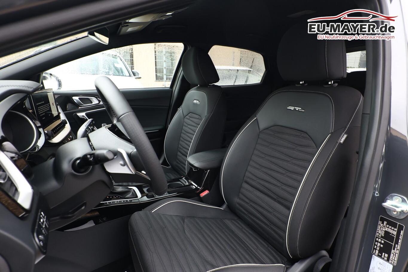 Anzeigeinstrumente Supervision mit LCD Display 4,2 Zoll, Auto-Hold-Funktion, Beifahrerairbag deaktivierbar, Dachreling, Fahrassistenz-System: Spurhalteassistent, Freisprecheinrichtung Bluetooth, Geschwindigkeitsbegrenzer, Handschuhfach beleuchtet, Heckleuchten LED in Wabenform mit sequentiellen Blinkern, Lendenwirbelstütze Sitz vorn links und rechts, Lenkrad (Lenksäule) höhen-/längsverstellbar, LM-Felgen 18 Zoll, Mittelarmlehne hinten, Reifen 235/45 R18, Rücksitzlehne geteilt klappbar (60:40), Seitenairbag vorn, Sitzbezug / Polsterung: Stoff/Kunstleder, Sitzheizung hinten, Sportsitze vorn, Zentralverriegelung, Audio-Navigationssystem KIA (10,25") (Mobile Online Dienste UVO Connect / Kia Connect), Klimaautomatik 2-Zonen (Sensor Scheibenbeschlagerkennung), Aktives Bremslicht (ESS), Brillenfach in Dachhimmel / Dachkonsole integriert, Dachhimmel schwarz, Fahrassistenz-System: Insassenalarm (Rear Occopant Alert, ROA), Induktionsladeschale für Smartphone, Innenspiegel mit Abblendautomatik, Karosserie: 5-türig, Laderaumboden variabel, Lenkrad heizbar, Luftausströmer im Fond mitte, Motor 1,6 Ltr. - 132 kW T-GDI KAT (1598 ccm), Otto-Partikelfilter (OPF), Parkbremse elektrisch, Pedale Aluminium, Radioempfang digital (DAB+), Sitz vorn links höhenverstellbar, Sitz vorn rechts mech. höhenverstellbar, Steckdose (12V-Anschluß) im Koffer-/Laderaum, Steckdose (12V-Anschluß) in Mittelkonsole, Warnanlage für Sicherheitsgurte hinten, Warnanlage für Sicherheitsgurte, Fahrer-/Beifahrerseite, Smartphone Schnittstelle (Apple CarPlay & Android Auto), USB-Schnellladeanschluß Mittelkonsole, Anti-Blockier-System (ABS), Bremsassistent, Fahrassistenz-System: Frontkollisionswarnung mit Fußgänger- und Fahrraderkennung und Abbiegefunktion, Antriebs-Schlupfregelung (TCS), Antriebsart: Frontantrieb, Elektron. Stabilitäts-Programm (ESP / ESC), Wegfahrsperre, Getriebe 7-Gang - Doppelkupplungsgetriebe DCT, Airbag Fahrer-/Beifahrerseite, Fensterheber elektrisch vorn + hinten, Isofix-Aufnahmen für Kindersitz, Kopf-Airbag-System, Mittelarmlehne vorn verschiebbar, Schließ-/Startsystem Smart-Key, Sitzheizung vorn, Verglasung hinten abgedunkelt (Privacy Glass), Bordcomputer, Fahrassistenz-System: Fahrprofilauswahl (Drive Mode), Heckklappe elektr. betätigt sensorgesteuert, Adaptive Geschwindigkeits-Regelanlage mit Stop&Go-Funktion, Fahrassistenz-System: Berganfahr-Assistent, Fahrassistenz-System: Verkehrszeichenerkennung, Rückfahrkamera, Lenkrad (Leder), Lenkrad mit Multifunktion, Servolenkung elektronisch gesteuert, Außenspiegel elektr. anklappbar, Außenspiegel elektr. verstellbar, beide, Außenspiegel heizbar, Bi-LED-Scheinwerfer, Einschaltautomatik für Fahrlicht, Fahrassistenz-System: Fernlichtassistent, Nebelscheinwerfer LED, Scheibenwischer mit Regensensor, Tagfahrlicht LED, Einparkhilfe hinten, Einparkhilfe vorn, Fahrassistenz-System: Müdigkeitserkennungs-Sensor (Driver Attention Warning, DAW), Fahrassistenz-System: Spurfolgeassistent (Lane Following Assist, LFA), Reifendruck-Kontrollsystem, Start/Stop-Anlage (ISG)