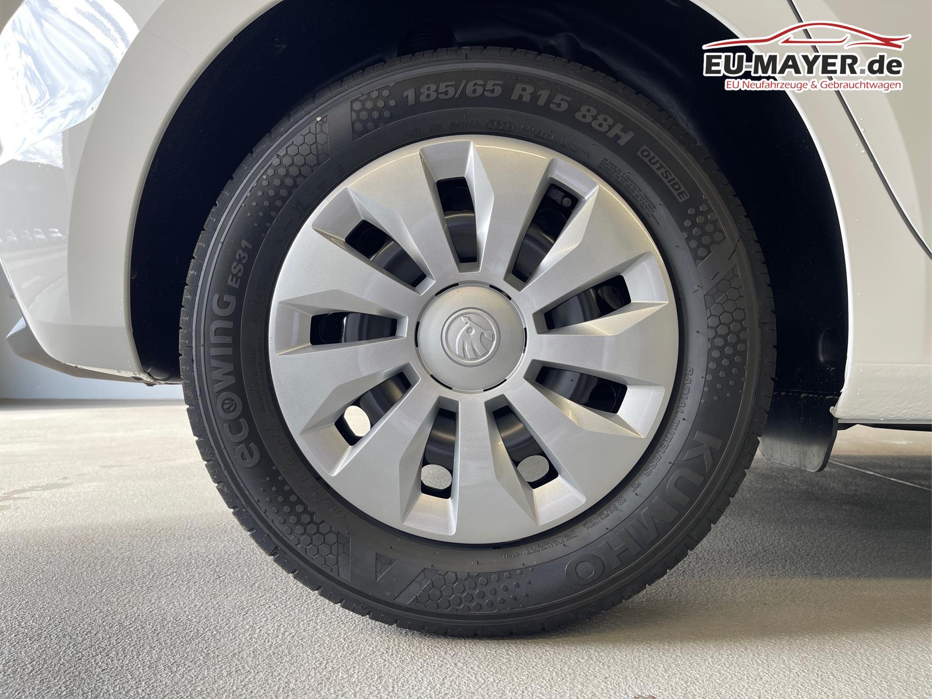 • 15 Zoll Stahlräder, Reifen 185/65 R15 88H, Spurhalteassistent, USB-C Schnittstelle, Kopfstützen, Airbag für Fahrer und Beifahrer, Beifahrerairbag-Deaktivierung, Freisprecheinrichtung Bluetooth, Tire-Mobility-Set, Zentralverriegelung mit Funkfernbedienung, Digitaler Radioempfang DAB, Wegfahrsperre elektronisch, ESC, ABS, ASR, Außenspiegel elektrisch einstell- und beheizbar, Außenspiegelgehäuse in Wagenfarbe, Gepäckraumabdeckung, Fahrersitz höhenverstellbar, Rücksitzlehne geteilt umklappbar, Heckscheiben Wisch-Waschanlage, Warnsignal bei nicht angelegten Sicherheitsgurten, Seitenairbag vorn mit Kopfairbag, Wärmeschutzverglasung, Brillenfach, Geschwindigkeitsbegrenzung, Start-Stopp-Anlage, Reifendruckkontrolle, Scheibenbremsen, Klimaanlage, Mittelarmlehne mit "Jumbobox", LED-Scheinwerfer inkl. Tagfahrlicht, Gepäckraumbeleuchtung, Fensterheber vorn elektrisch, Nebelscheinwerfer, ParkPilot hinten, Wireless App-Connect, Servolenkung, Radio