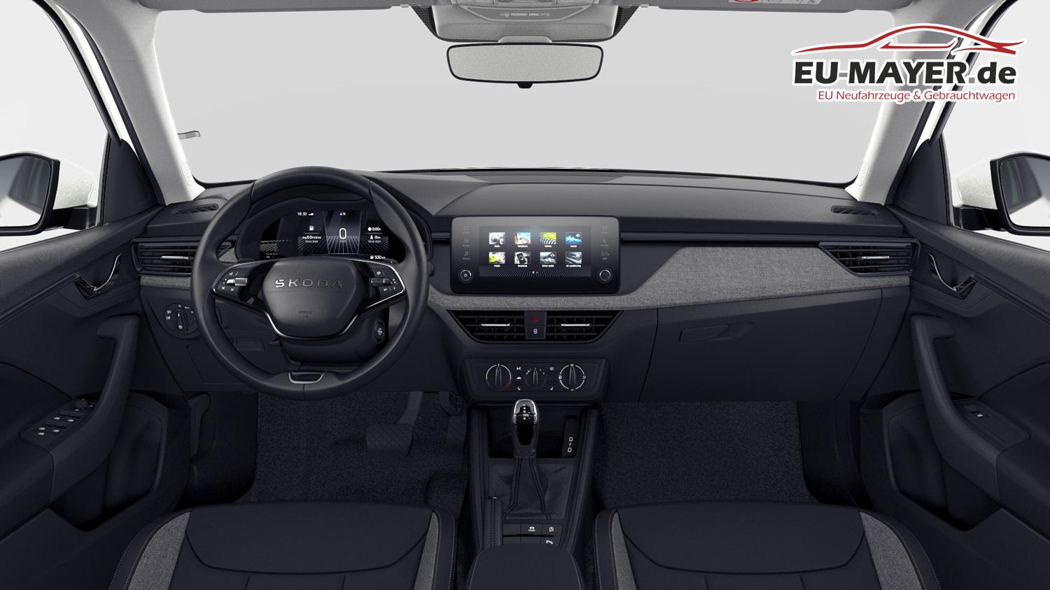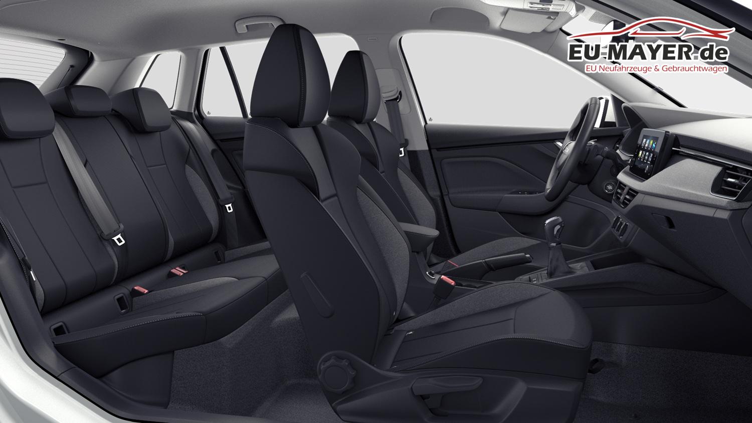 • Innenausstattung Design Selection LOFT Stoffbezüge Loft Schwarz/Grau, Dekor Krepp Recycled, Interieurleisten und Luftausströmerumrandung Schwarz glänzend