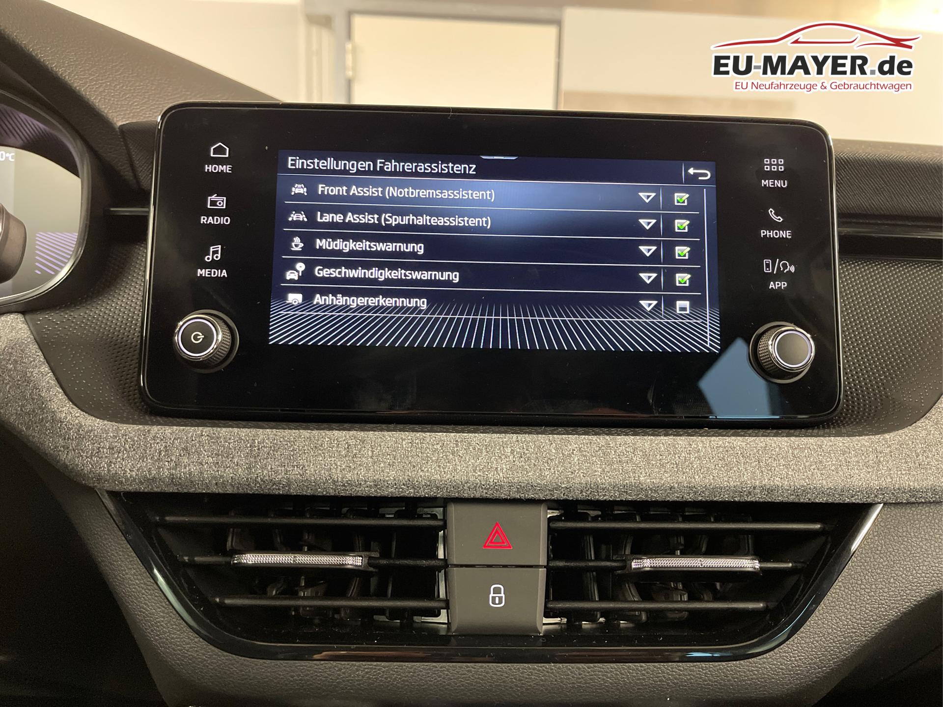 • 16 Zoll Leichtmetallräder, Airbag für Fahrer und Beifahrer, Beifahrerairbag-Deaktivierung, Seitenairbag vorn mit Kopfairbag, Notrufsystem eCall, Dachreling in Schwarz, Klimaautomatik 2-Zonen-Climatronic, USB-C Schnittstelle, Digitaler Radioempfang DAB, Digital Cockpit inkl. Bordcomputer, Scheibenbremsen vorn und hinten, ESC, ABS, ASR, Front Assist inkl. City-Notbremsfunktion, Fensterheber vorn und hinten elektrisch, Berganfahrassistent, Wegfahrsperre elektronisch, Zentralverriegelung mit Funkfernbedienung, Waschwasser-Standanzeige, Mittelarmlehne vorne Jumbo Box, Lichtsensor, Raucherpaket, Isofix Beifahrersitz, Freisprecheinrichtung Bluetooth, 12 Volt Steckdose, Reserverad als Notrad, Vordersitze höhenverstellbar, Radio Skoda Infotainment, Heckscheiben Wisch-Waschanlage, Lendenwirbelstütze für die Vordersitzlehnen, Brillenhalter, Geschwindigkeitsregelanlage mit Speed-Limiter, Reifendruckkontrolle, Verkehrszeichenerkennung, Kopfstützen, Multifunktions-Lederlenkrad mit Schaltwippen, Lenksäule höhenverstellbar, Wireless App-Connect, Servolenkung, Dreipunkt-Sicherheitsgurte, Rücksitzlehne geteilt umklappbar, Sicherheitsinnenspiegel automatisch abblendend, Spurhalteassistent, Start-Stopp-Anlage