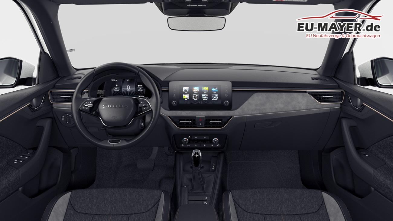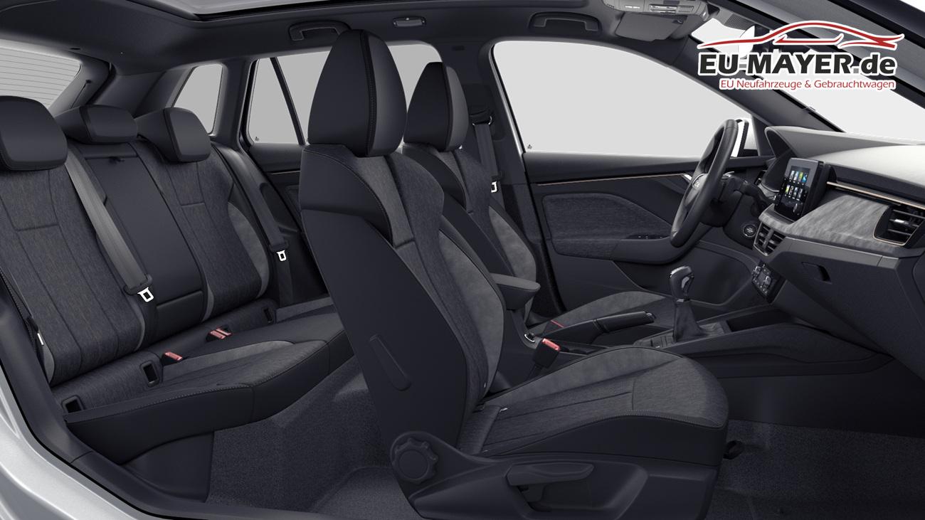 • Innenausstattung Design Selection LODGE Stoffbezüge Lodge Schwarz/Grau mit Kontrastline Copper, Dekor Suedia Grau, Interieurleisten und Luftausströmerumrandung Schwarz glänzend mit Kontrastline Copper, LED-Ambientebeleuchtung (2-farbig, Weiß oder Rot), Mittelarmlehne hinten