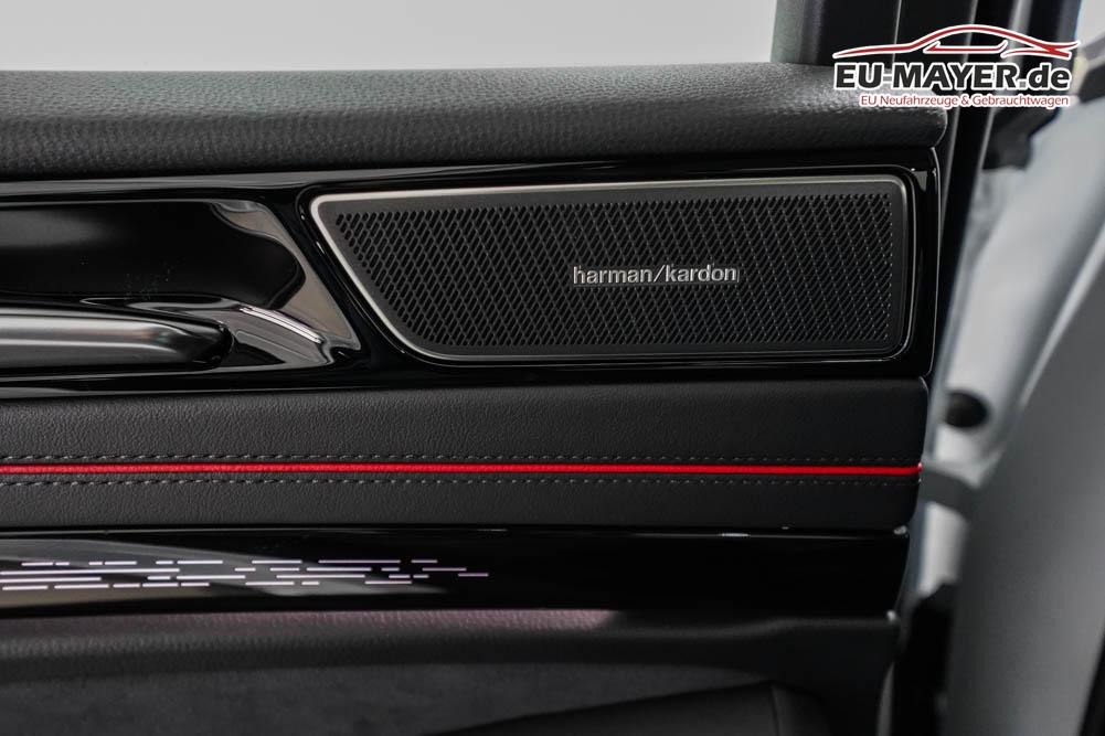 Beifahrersitz höhenverstellbar, Fahrersitz höhenverstellbar, Lederlenkrad, Lendenwirbelstütze vorne, Mittelarmlehne vorne, Sitzbezug Stoff, geteilt umklappbare Rücksitzlehne, Lenkrad höhenverstellbar, Sitzbezug ArtVelours, Ambiente-Beleuchtung, Elektrisch verstellbare Vordersitze mit Memoryfunktion, Massagesitze vorne, Beheizbares Lenkrad, Multifunktionslenkrad, Isofix, Sitzbelüftung, Isofix Beifahrersitz, abgedunkelte Scheiben, 21 Zoll Alufelgen , Dachreling schwarz, Stoßfänger in Wagenfarbe, Türgriffe in Wagenfarbe, ABS, Außenspiegel elektrisch einstell-/anklappbar, Fensterheber elektrisch, Kopfairbags, Seitenairbags, Servolenkung, Sitzheizung vorne, DCC, Stabilitätskontrolle, Wegfahrsperre, Zentralverriegelung mit Funk, Außenspiegel beheizbar, Beifahrerairbag, Fahrerairbag, Parkpilot hinten, Parkpilot vorne, Reifendruckkontrolle, Frontscheibe beheizbar, Head-up Display, Regensensor, Lichtsensor, Anhängekupplung schwenkbar, Tempomat Abstand ACC, Fernlichtassistent, Notbremsassistent, Spurhalteassistent, Totwinkelassistent, Verkehrszeichenerkennung, Matrix-LED-Scheinwerfer, LED-Tagfahrlicht, Kurvenlicht, Rückfahrkamera, Park-Assistent, Panoramadach, Elektrische Heckklappe inkl. Virtual Pedal, StartStopSystem, Sitzheizung hinten, Innenspiegel automatisch abbl., Müdigkeitswarnsystem, Notrufsystem, Klimaautomatik 3-Zonen, 360-Grad-Kamera, Geschwindigkeitsbegrenzer, Android Auto, Apple Carplay, Freisprecheinrichtung, Induktionsladestation, Sprachsteuerung, Touchscreen, USB Typ-C, Radio DAB, Bluetooth, Bordcomputer, Navigationssystem Discover Pro, Soundsystem Harman Kardon, App-Connect, ergoActive-Vordersitze, Fahrprofilauswahl, LED-Rückleuchten, Emergency Assist, Travel Assist, Wärmepumpe,