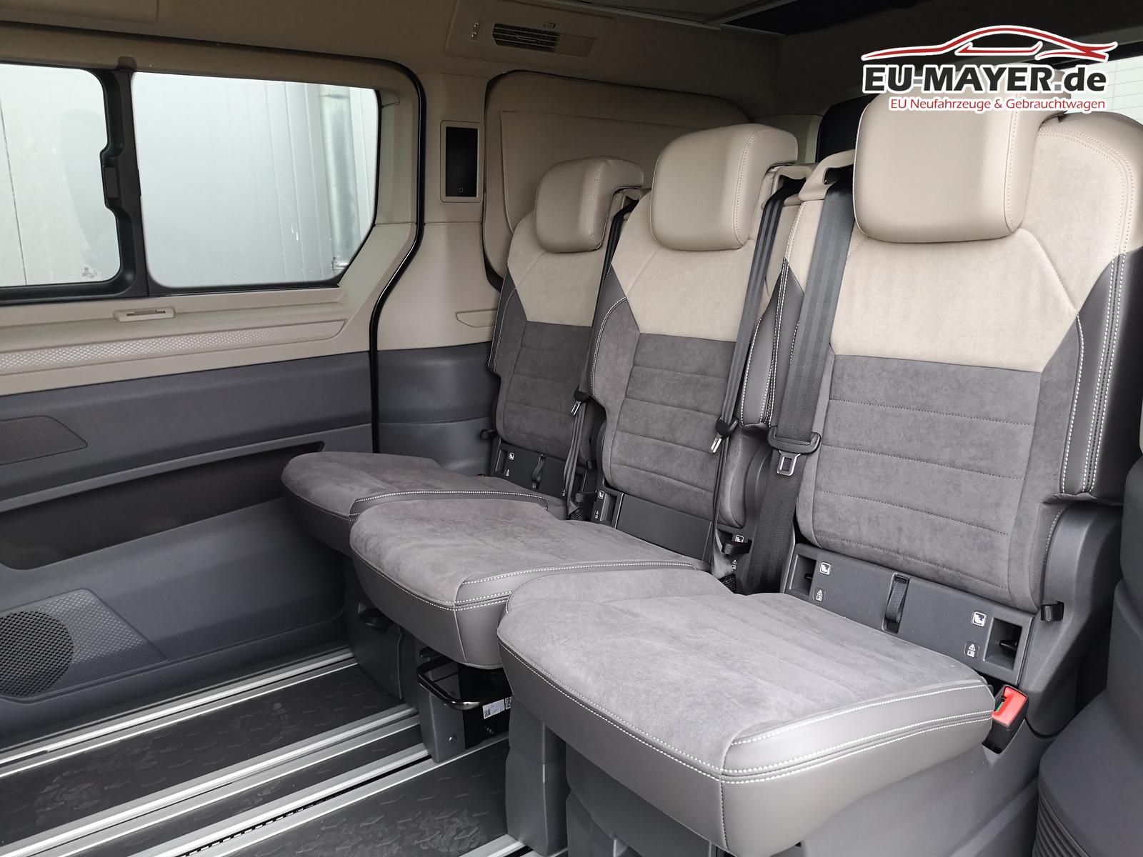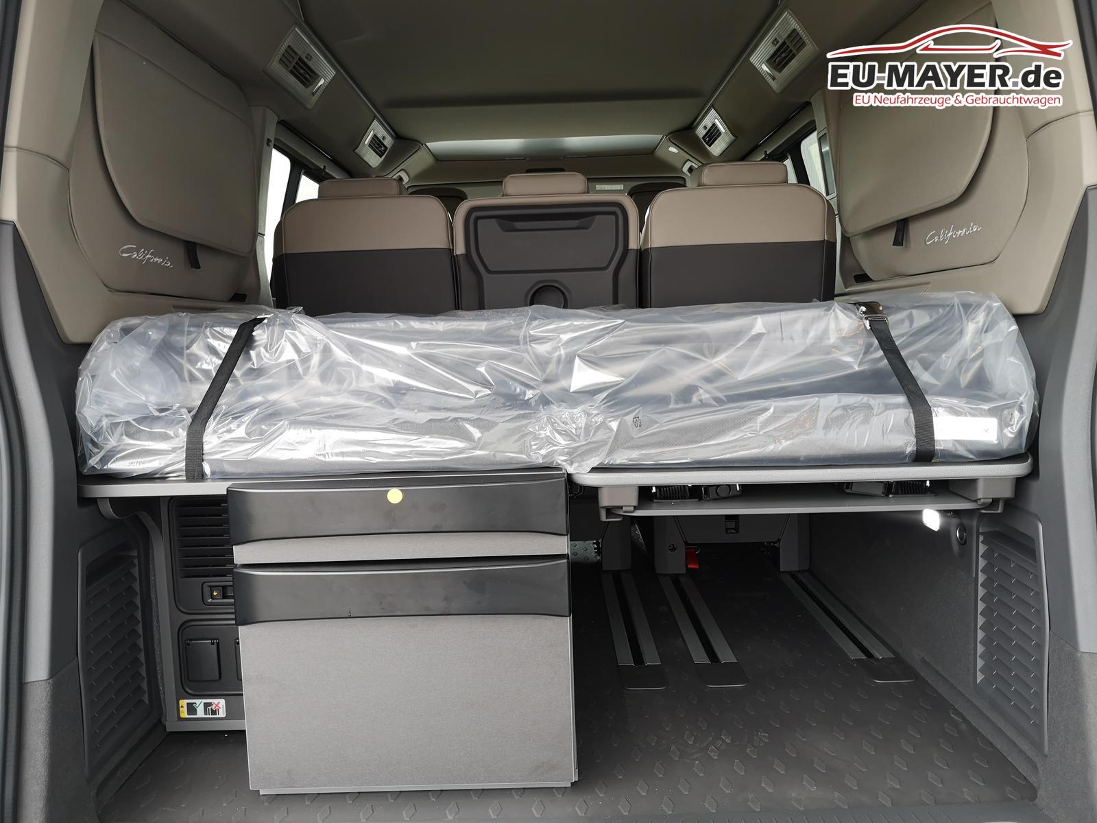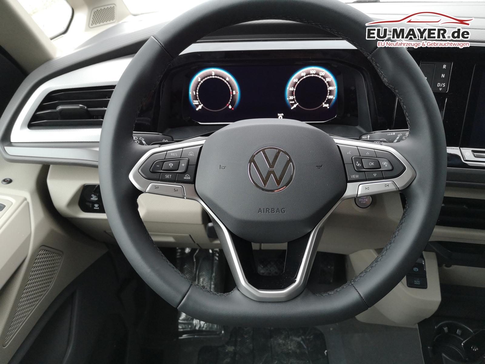 Sonstige: Zulassung als Wohnmobil, Werksanschlussgarantie auf 5 Jahre / max. 100.000 Km. Komfort und Funktion: 230-Volt-Einspeisung mit Ladefunktion für Fahrzeugbatterien, 230-Volt-Steckdose im Innenraum, 230-Volt-Steckdose mit Wechselrichter im Innenraum, Aufstelldach manuell, Faltenbalg grau mit 3 Fenstern und einer Frontöffnung, Faltenbalg in Basalt Grey, Digital Cockpit Pro, Geschwindigkeitsregelanlage elektronisch, Innenbeleuchtung Camper, LED-Hauptscheinwerfer mit LED-Tagfahrlicht, LED-Rückleuchten, Markisenschiene beidseitig in schwarz, Miniküche am Heck mit ausziehbarem einflammigen Gaskocher inkl. Technikbox mit Camper Batterie und 230-Volt-Steckdose, Campingtisch unter Bettverlängerung, 2 Campingstühle in der Heckklappe integriert, Multifunktions-Lederlenkrad mit Schaltwippen, Schlafplätze, 2 Schlafplätze im Aufstelldach oben (1.140 x 2.050 mm), 2 Schlafplätze im Wohnraum unten über gesamte Fahrzeugbreite (1.980 x 1.330 mm), Schubladen im Fahrer- und Fahrgastraum sowie unter den äußeren Sitzen inkl. 2 Abfallbehälter, Sitze, 2. Sitzreihe, 3 Einzelsitze mit Schlafauflage, Sitz Fahrer/Beifahrer drehbar mit Armlehnen an den Vordersitzen, beidseitig, mit elektrischer Lendenwirbelstütze, Sprachsteuerung plus ICC (InCarCommunication), Schiebetür links und rechts, Verdunklungssystem mit Rollos und Gardinen, Optik: Außenspiegelgehäuse in Schwarz hochglanz, Bodenbelag Kunststoff im Fahrgast-/Laderaum, Dekoreinlagen ""Scale Light Grey"", Fenster ab B-Säule abgedunkelt, 65% lichtabsorbierend, Scheinwerferleiste schwarz, Schiebefenster in der Schiebetür links und rechts, Infotainment: Wireless Mirror Link/App-Connect, Navigation über App Connect möglich (kompatibles Smartphone erforderlich), Lautsprecher 8 Stück, Bluetooth Schnittstelle, USB-C-Schnittstelle vorne & hinten, 2 USB vorne, 4 USB im FGSTR, Sicherheit und Fahrerassistenz: Ablenkungs- und Müdigkeitserkennung, Außenspiegel elektrisch einstell-, beheiz- und anklappbar, Einparkhilfe im Front- und Heckbereich, Notbremsassistent ""Front Assist"", mit Fußgänger- und Radfahrererkennung, Spurhalteassistent ""Lane Assist"", Tagfahrlichtschaltung mit Assistenzfahrlicht, Verkehrszeichenerkennung.