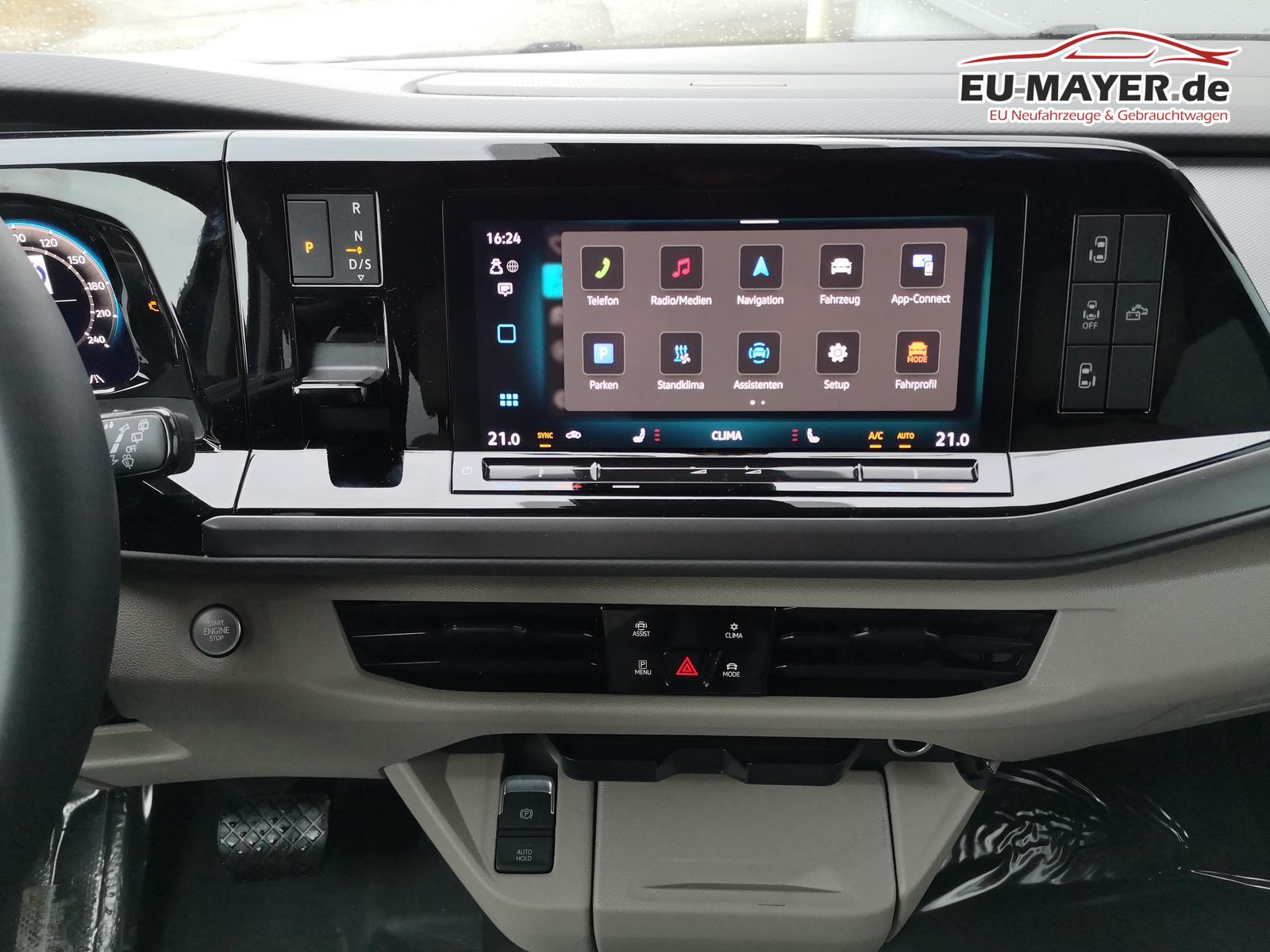 (2H5) Fahrprofilauswahl, (7UYR27) Radio-Navigationssystem ""Discover Pro"" mit 25,4 cm (10"") Touch-Farbdisplay inklusive Streaming & Internet"", (4GX) Frontscheibe Wärmeschutzglas, beheizbar, (Z2O) Assistenzpaket Advanced inkl. Car2X, Fahrerassistent ""Travel Assist"" inkl. Spurhalteassistent ""Lane Assist"" und ""Emergency Assist"", Spurwechselassistent ""Side Assist"" inkl. ""Blind Spot Detection"", Ausparkassistent und Ausstiegswarner, Automatische Distanzregelung ACC ""stop&go"", (9CE) Innenbeleuchtung an Aufstelldach Plus, Ambientebeleuchtung am Dachrahmen, (7AL) Diebstahlalarmanlage mit Innenraumüberwachung Back-Up Horn und Abschleppschutz, (4K6) Zentralverriegelung Keyless Advanced + Safesicherung, Zentralverriegelung mit schlüssellosem Schließ- und Startsystem, (7VH) Umluftstandheizung im Fahrerhaus/Wohnraum mit FFB, Frontscheibenenteisung, Programmierung erfolgt über den Bildschirm in der Instrumententafel, Dauerbetrieb: max. bis der Kraftstoff für die Heizung leer ist, Zeitbegrenzter Betrieb: max. 120 min, Ausströmer links im Bereich der Schiebetür.