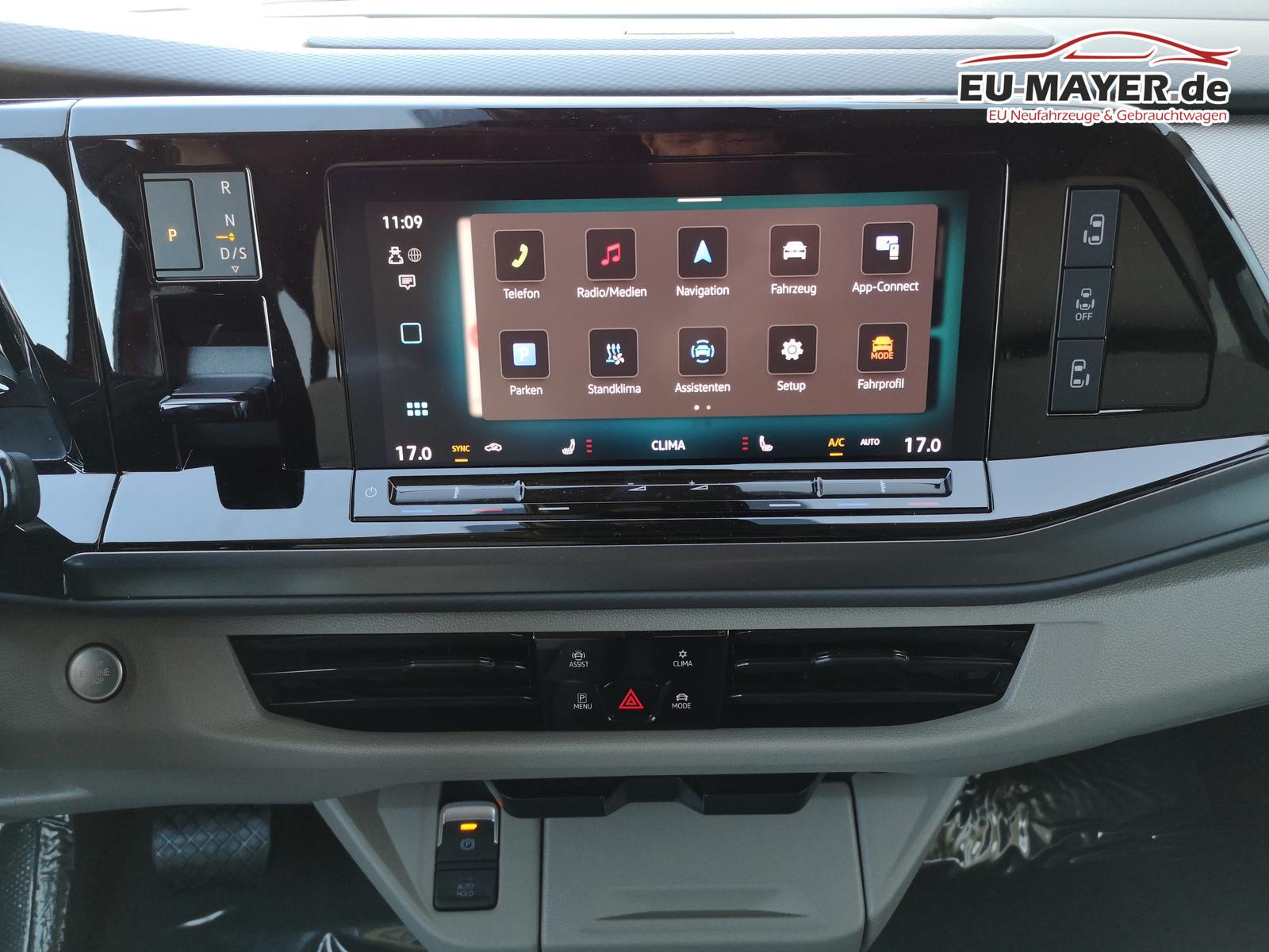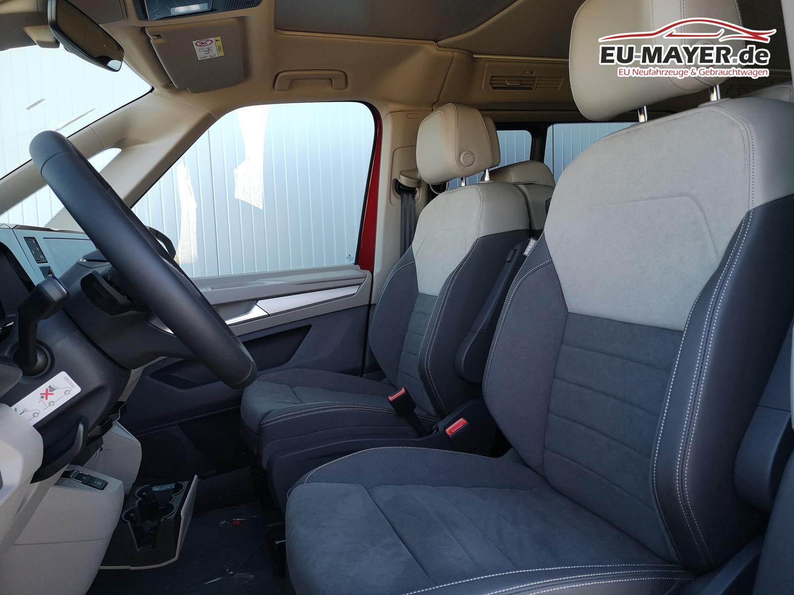 Sonstige: Zulassung als PKW, Werksanschlussgarantie auf 5 Jahre / max. 100.000 Km, Komfort und Funktion: Aufstelldach manuell, Faltenbalg grau mit 3 Fenstern und einer Frontöffnung, Faltenbalg in Basalt Grey, Digital Cockpit Pro, Multifunktions-Lederlenkrad mit Schaltwippen, 2 Schlafplätze im Aufstelldach oben (1.140 x 2.050 mm), Sitze vorne höhenverstellbar, Sprachsteuerung plus ICC (InCarCommunication), Schiebetür links und rechts, Verdunklungssystem mit Kapuzengardinen und Magnetgardinen, Optik: Außenspiegelgehäuse in Schwarz hochglanz, Bodenbelag im Fahrgastraum mit trittverstärktem Velours-Teppichboden, Scheinwerferleiste schwarz, Umfeldbeleuchtung Türbereich, Infotainment: Wireless Mirror Link/App-Connect, Navigation über App Connect möglich (kompatibles Smartphone erforderlich), Lautsprecher 8 Stück, Bluetooth Schnittstelle, Sicherheit und Fahrerassistenz: Ablenkungs- und Müdigkeitserkennung, Außenspiegel, elektrisch einstell-, beheiz- und anklappbar, Einparkhilfe im Front- und Heckbereich, Notbremsassistent ""Front Assist"" mit Fußgänger- und Radfahrererkennung, Spurhalteassistent ""Lane Assist"", Verkehrszeichenerkennung.