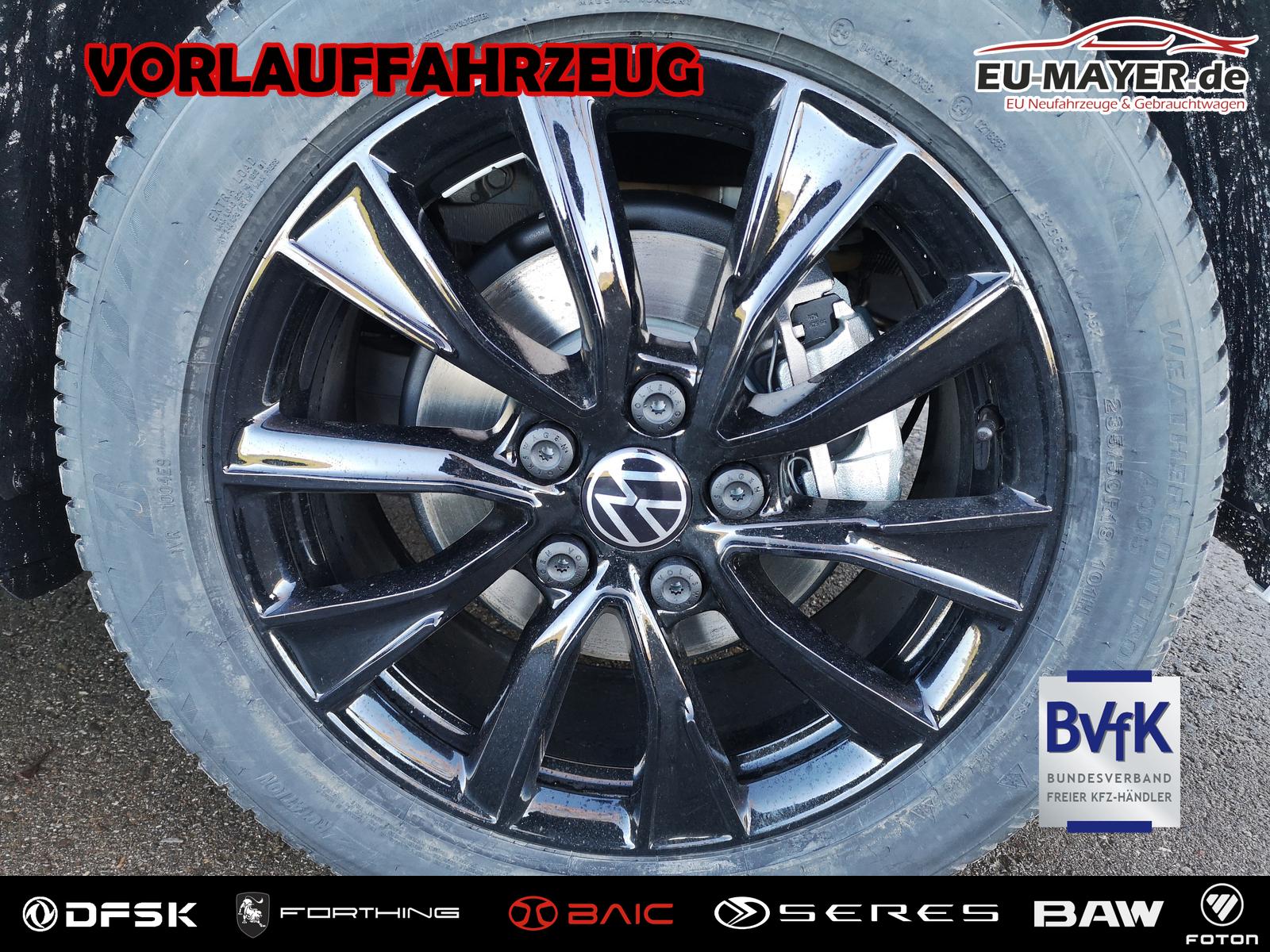 Fahrzeug 8-fach-bereift, Leichtmetallräder 7,5J x 18 (Sport Edition Design TN28, schwarz glanzgedreht) mit Sommerreifen 235 50 R18, Leichtmetallräder 7,5 J x 18 ""Toshima"" schwarz mit Winterreifen (M+S Kennung inkl. Schneeflocke / Allwetterreifen), (0NP) Bulliplakette am Kotflügel, (1U3) Bodenschienen mit Multifunktionstisch inkl. 3 Becherhalter, verschiebbar auf der vollständigen Länge des Schienensystems, (2FT) Multifunktionslederlenkrad beheizbar mit Schaltwippen, (4A3) Sitzheizung vorne, (4GX) Frontscheibe beheizbar und geräuschdämmend, (4K5) Zentralverriegelung Keyless Advance (schlüsselloses Öffnen und Starten),(6I6) Travelassistent, (6KF) Scheinwerferleiste hinterleuchtet, (7AL) Diebstahlwarnanlage, (7J2) Digital Cockpit Pro, (7UY) Radio Navigationssystem Discover Pro, (9AH) Klimaanlage ""Air Care Climatronic"", (N0K) Sitzbezug Bi-Colour Leder ""Savona"", (1D2) Anhängerkupplung schwenkbar, (Z8A) Schiebefenster im Fahrgastraum links und rechts, Fenster ab B-Säule abgedunkelt, (ZBR) 7 Sitzer: Sitzvariante 2-2-3 (Vis-a-Vis entgegen der Fahrrichtung) inkl. 4 Armlehnen, (1LB) Fahrwerk 17 Zoll, (2H5) Fahrprofilauswahl, (3FG) Panoramaglasdach, (7VL) Warmwasserstandheizung im Fahrerhaus inkl. FFB, (7W7) Proaktives Insassenschutzsystem, (9IJ) Mobiltelefon-Schnittstelle ""Comfort"" inkl. induktive Ladestation, (9VV) Soundsystem ""Harman Kardon"" inkl. 13 Lautsprecher, 840 Watt Gesamtleistung und Subwoofer, (KS1) Head Up Display, (P2G) Parkpaket Advance, Parklenkassistent inkl. ""Area View"" inkl. Rückfahrkamera, (ZED) Easy Open Paket Advanced, Umfeldbeleuchtung an der Heckklappe, Ambientebeleuchtung 30-farbig, Heckklappe sowie Schiebetüren elektrisch inkl. Easy Open/Close Funktion.