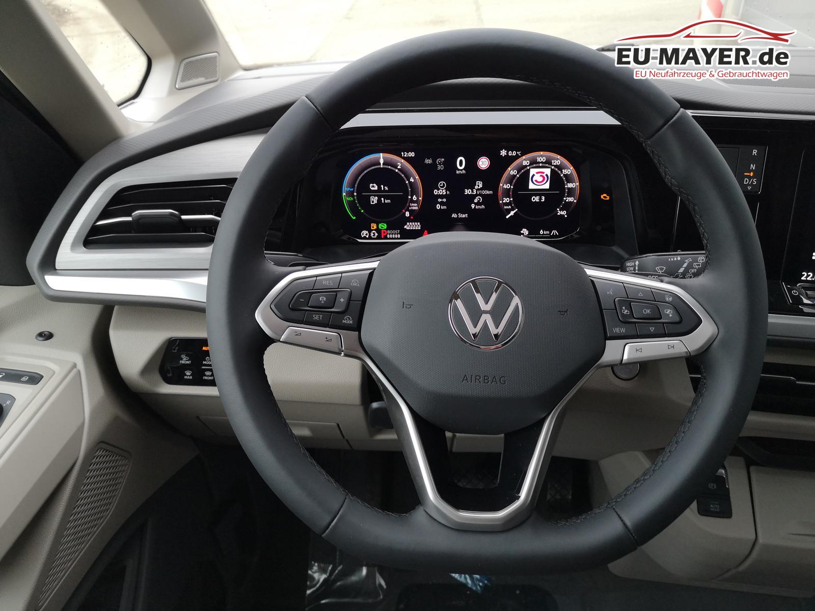 IQ.Light - LED-Matrix-Scheinwerfer, Automatische Distanzregelung ACC mit ""stop & go"" und Geschwindigkeitsbegrenzer, Schiebetür links und rechts sowie Heckklappe mit Zuziehhilfe, Spurhalteassistent ""Lane Assist"", Spurwechselassistent ""Side Assist"" inkl. ""Blind Spot Detection"" (Totwinkelerkennung im Spiegel), Spurhalteassistent ""Lane Assist"", Spurwechselassistent ""Side Assist"" inkl. ""Blind Spot Detection"" (Totwinkelerkennung im Spiegel), Standklima/Heizung: Steuerung im Infotainment-System und über die Volkswagen App (Vertrag von VW Connect Plus erforderlich). Bei gestecktem Ladestecker wird das Fahrzeug etwa 30 Minuten lang klimatisiert bzw. geheizt, bei nicht gestecktem Ladestecker verkürzt sich die Laufzeit der Klimatisierung auf etwa 10 Minuten, Werksanschlussgarantie auf 5 Jahre / max. 100.000 km.
