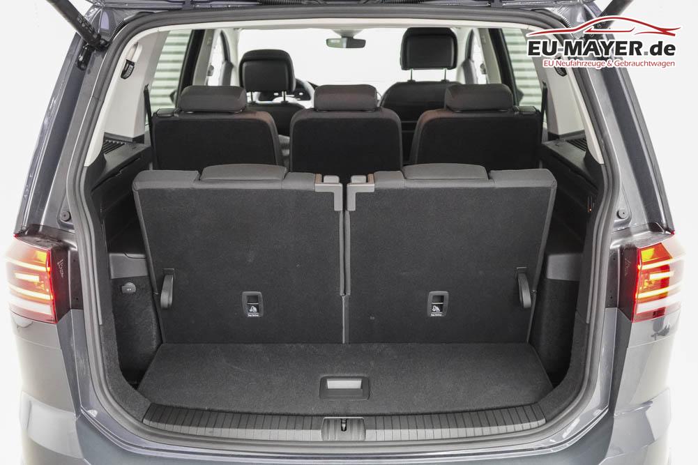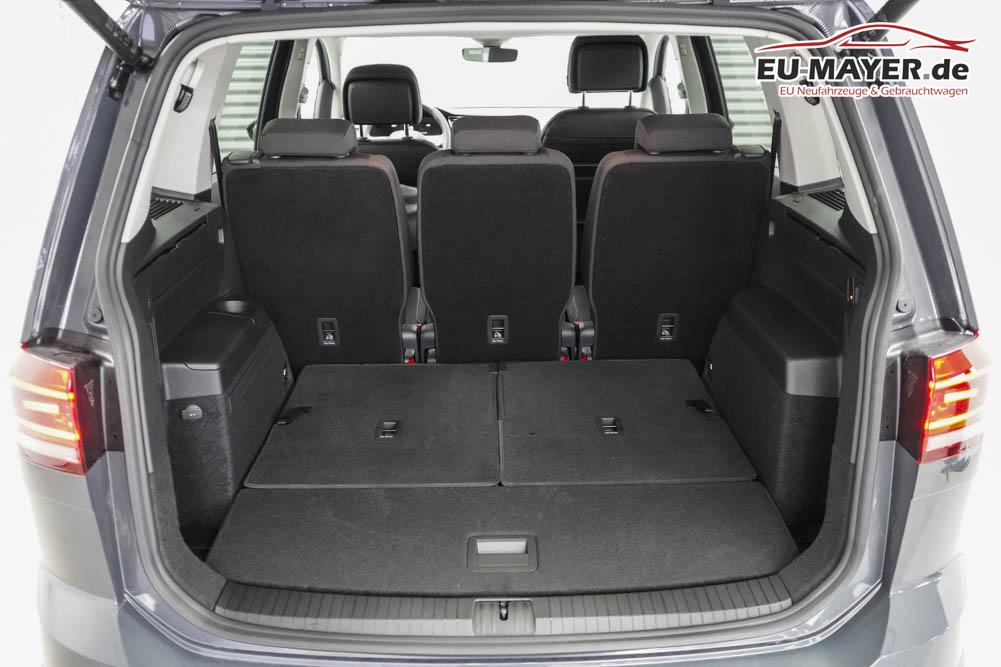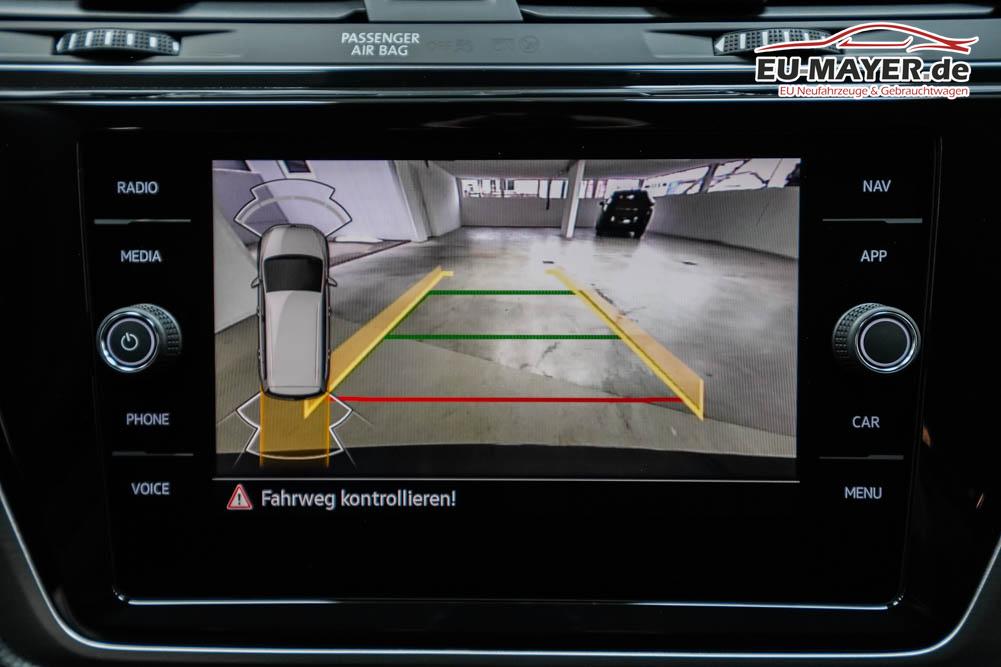 Beifahrersitz höhenverstellbar, Fahrersitz höhenverstellbar, Lederlenkrad, Lendenwirbelstütze vorne, Sitzbezug Stoff, 7 Sitze, Gepäckraumabdeckung, Lenkrad höhenverstellbar, Multifunktionslenkrad, Isofix, Beifahrersitz umklappbar, abgedunkelte Scheiben, 17 Zoll Alufelgen Salvador, Dachreling silber, Außenspiegel in Wagenfarbe, Stoßfänger in Wagenfarbe, Türgriffe in Wagenfarbe, ABS, Alarmanlage, Außenspiegel elektrisch einstell-/anklappbar, Fensterheber elektrisch, Klimaautomatik, Kopfairbags, Nebelscheinwerfer, Seitenairbags, Servolenkung, Sitzheizung vorne, ESP, Wegfahrsperre, Zentralverriegelung mit Funk, Außenspiegel beheizbar, Beifahrerairbag, Fahrerairbag, Parkpilot hinten, Parkpilot vorne, Reifendruckkontrolle, Regensensor, Digital Cockpit, Anhängekupplung schwenkbar inkl. Trailer Assist, Tempomat Abstand ACC, Dynamic Light Assist, Notbremsassistent, Spurhalteassistent, Totwinkelassistent, Verkehrszeichenerkennung, IQ-LED-Scheinwerfer, LED-Tagfahrlicht, Kurvenlicht, Pannenset, Rückfahrkamera, Park-Assistent, Elektrische Heckklappe inkl. Virtual Pedal, KeylessEntry, StartStopSystem, Innenspiegel automatisch abbl., Berganfahrassistent, Müdigkeitswarnsystem, Notrufsystem, Android Auto, Apple Carplay, Freisprecheinrichtung, Induktionsladestation, Touchscreen, USB, Radio DAB, Bluetooth, Bordcomputer, Navigationssystem Discover Media, LED-Rückleuchten, Travel Assist, Stauassistent, Emergency Assist, Wireless App-Connect, 4 Jahre bis max. 80.000km Herstellergarantie, R-Line Exterieur,